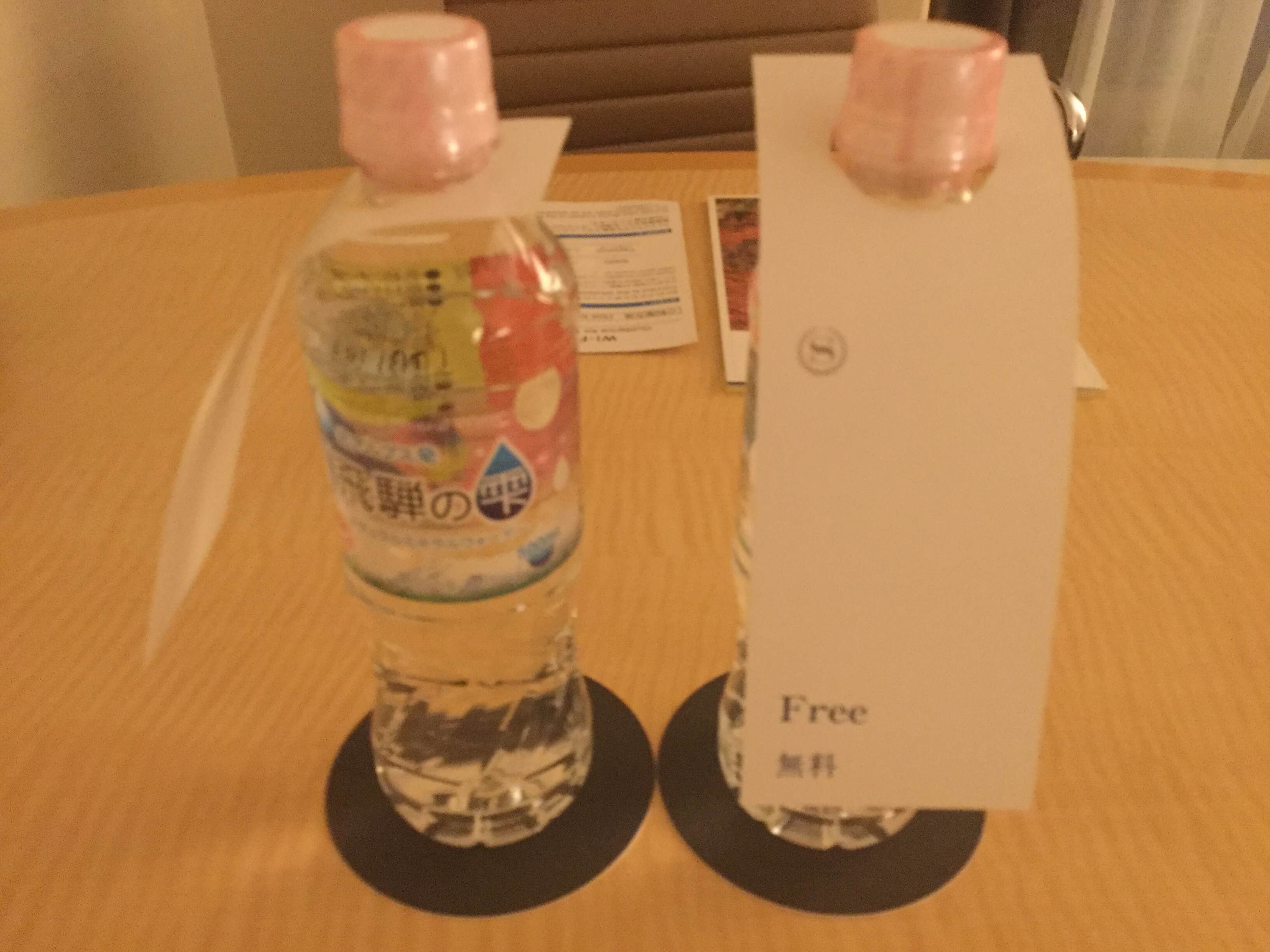 無料の水は2本置かれています。「飛騨の雫」というものです。