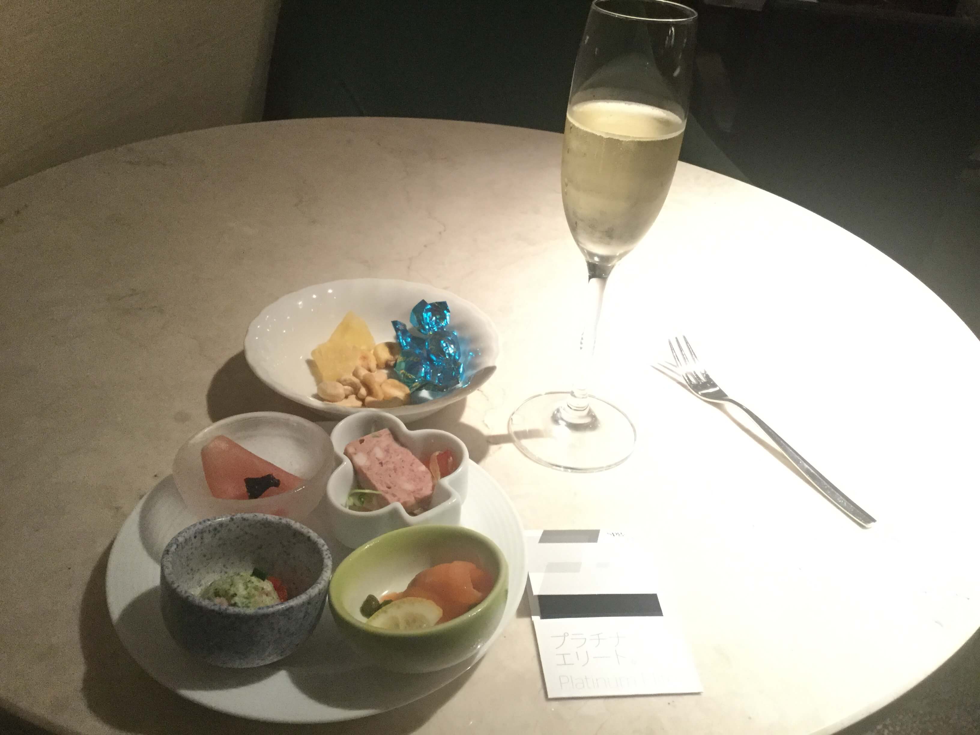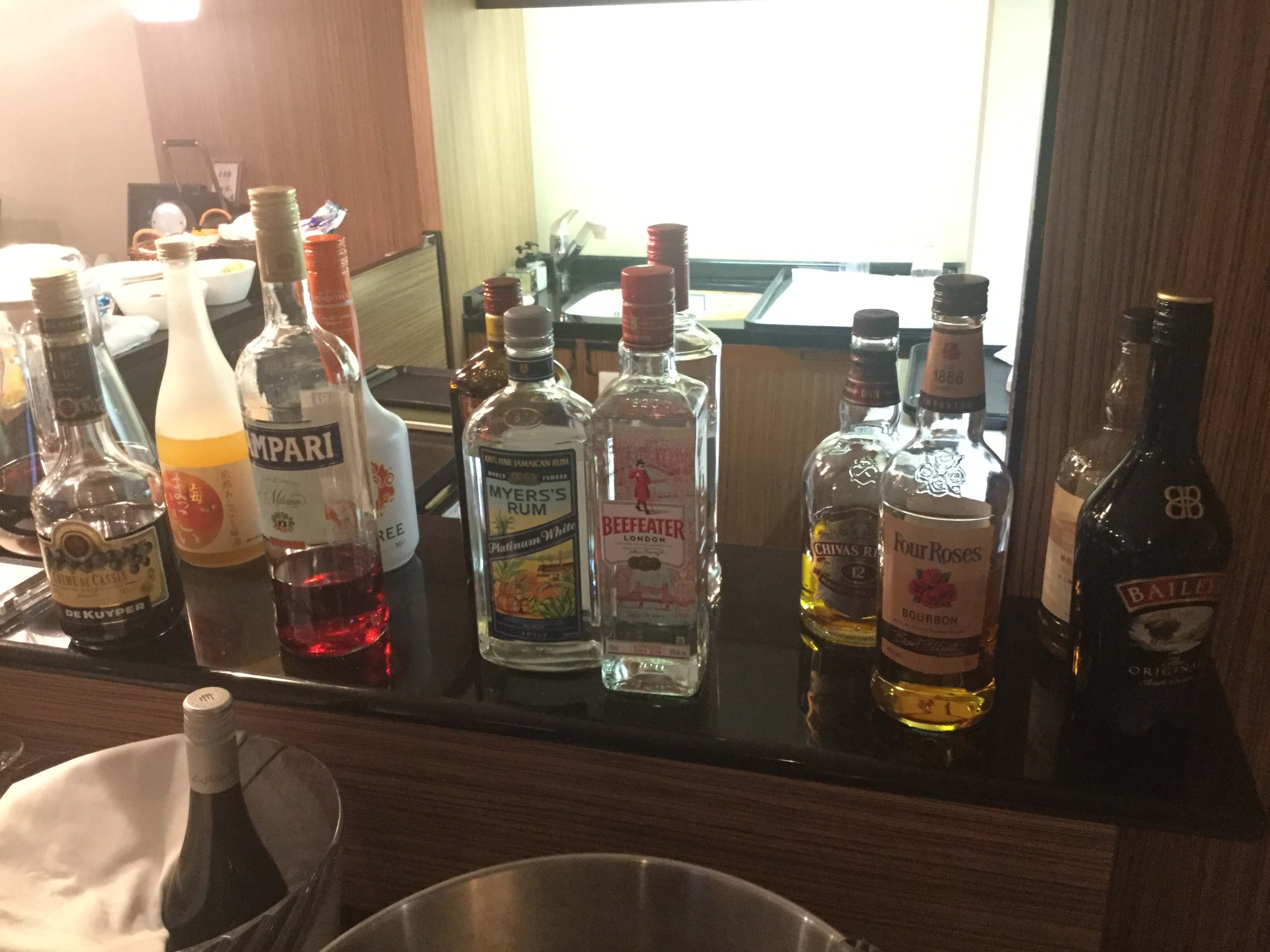 アルコール類はビール、日本酒、ワイン(赤、白、スパークリング)、梅酒、ウイスキー、スピリッツが数種類とラウンジの規模からすると比較的豊富です。