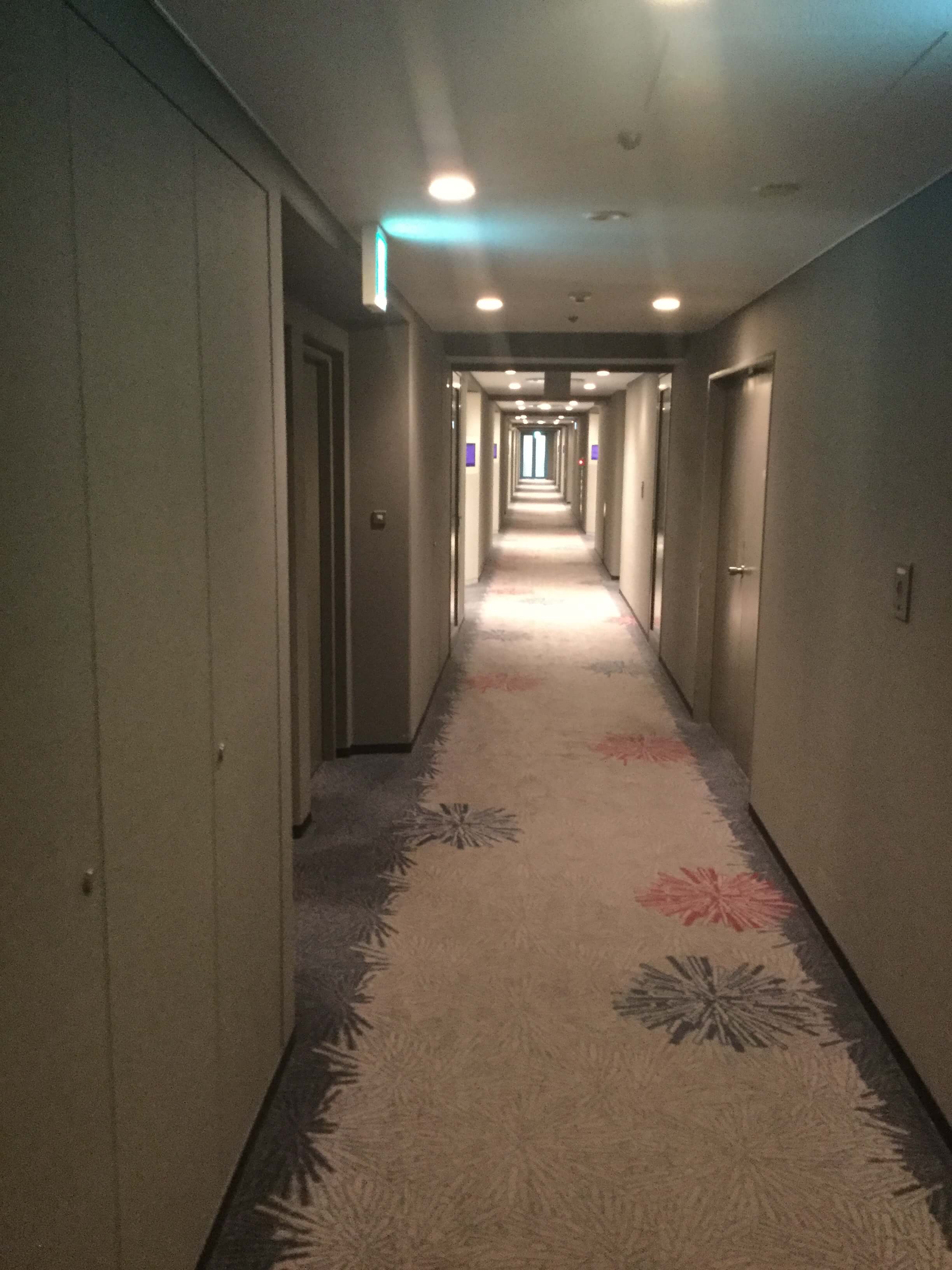 シェラトン都ホテル大阪とは別棟になっているのですが5階から直接アクセス可能です。5階でエレベーターを降りてこの長い廊下の突き当りが都ヘルスクラブです。