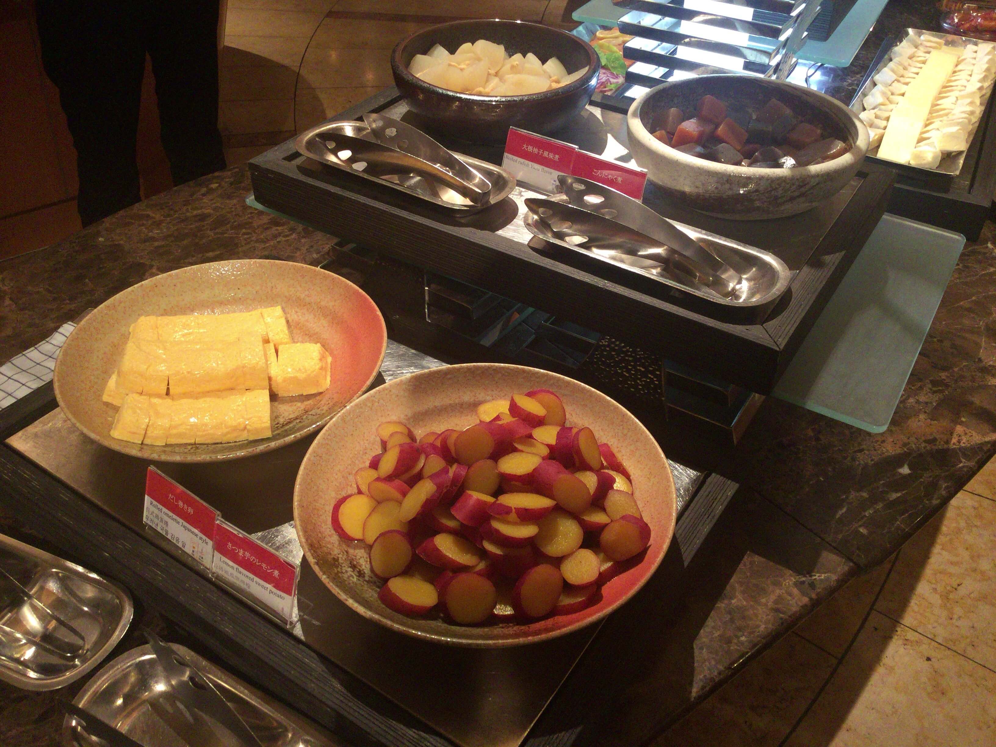 だし巻き、さつま芋のレモン煮、こんにゃく煮、大根柚子風味煮などの和食もあります