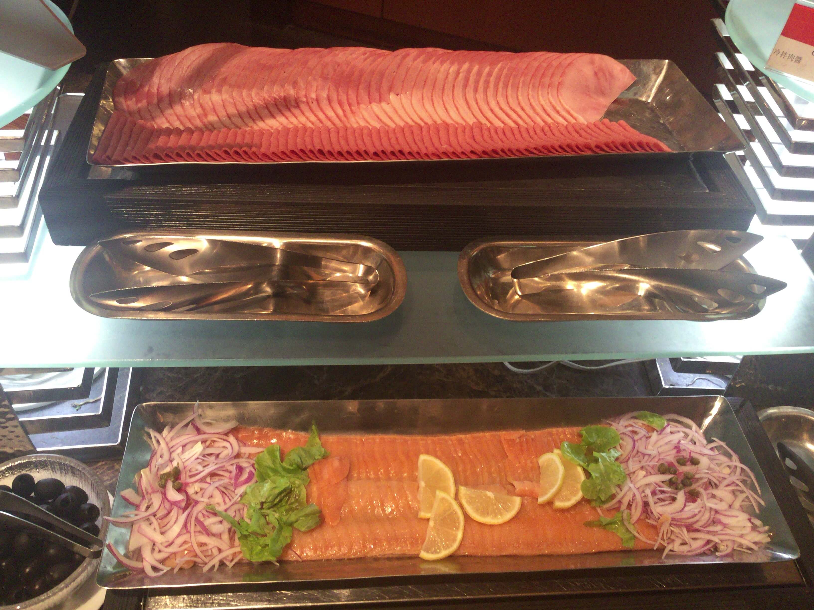 スモークサーモンやハムなどのコールドミール。この裏にはチーズがありました。