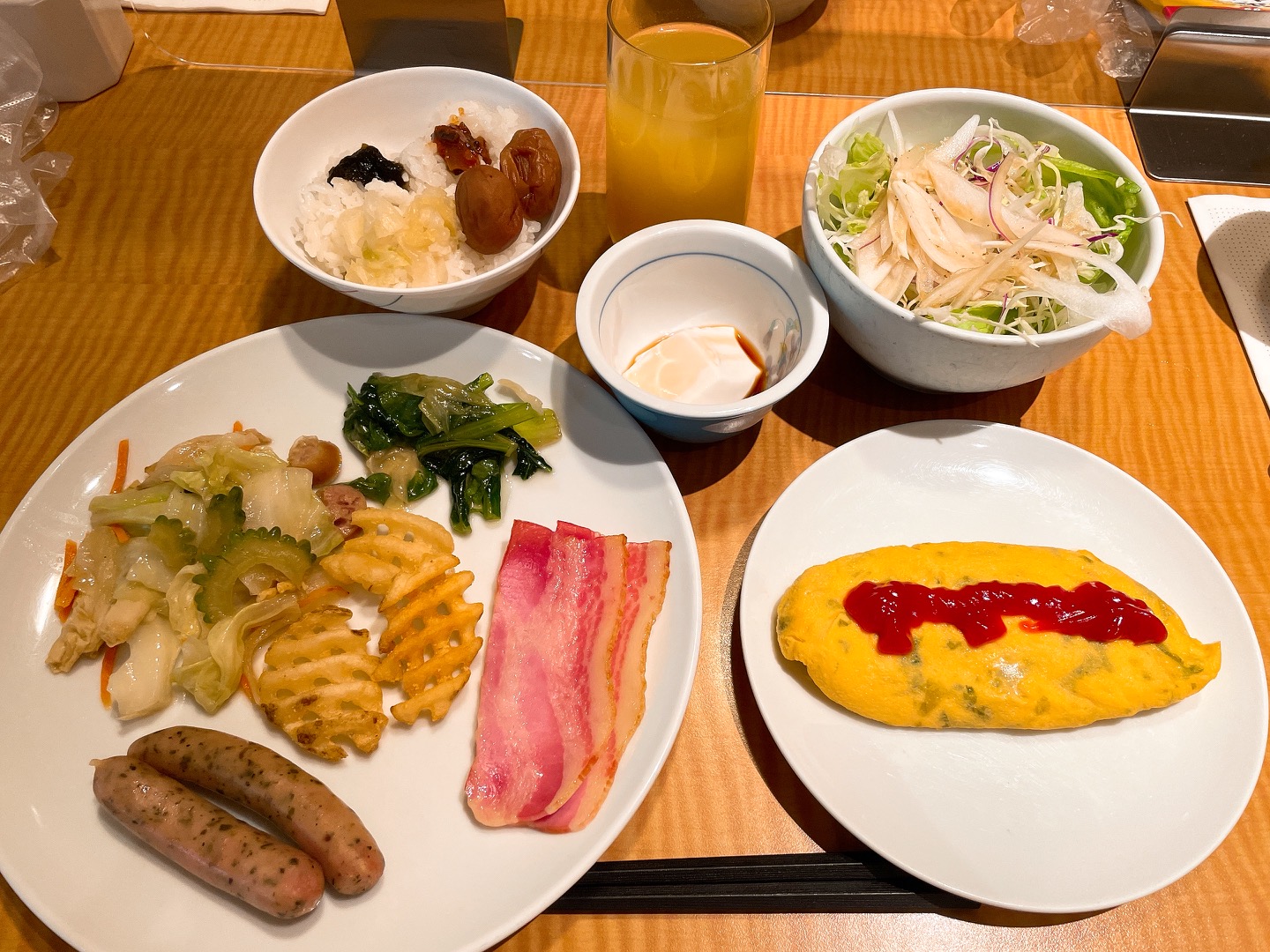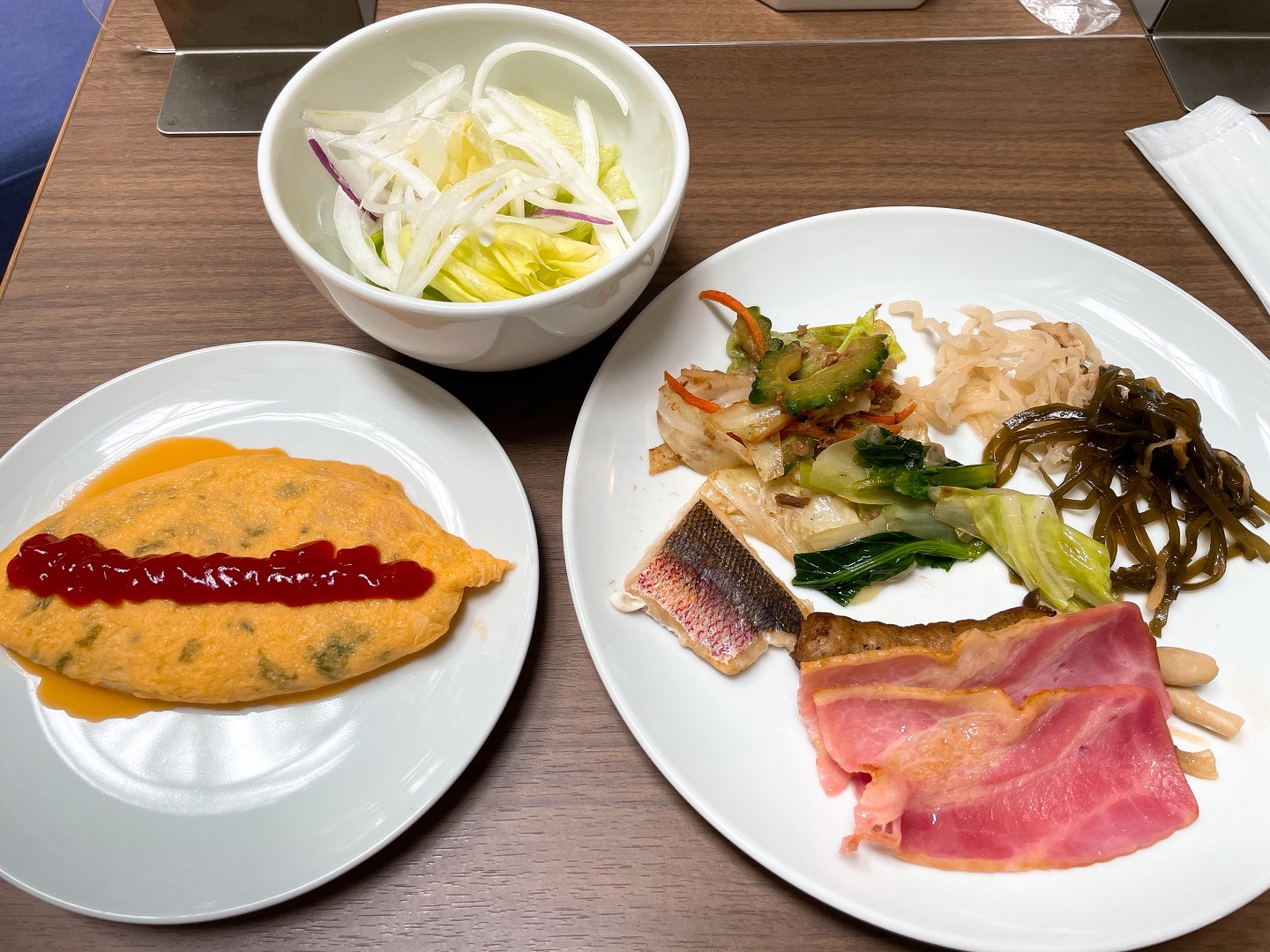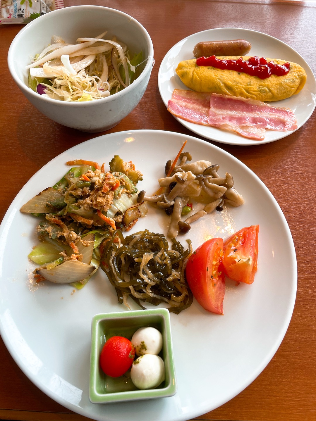 麩が多かったりゴーヤが多かったり味付けが違ったり日によって少し内容が違いましたが、朝食メニューの中で個人的に一番気に入ったメニューです!毎日ちょっとずつ違い飽きません