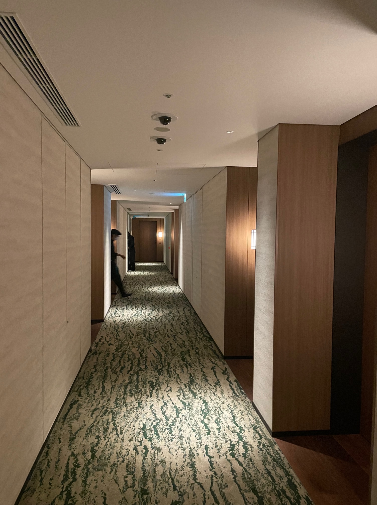 廊下は緑のカーペットが印象的です。若草山のイメージでしょうか(笑)