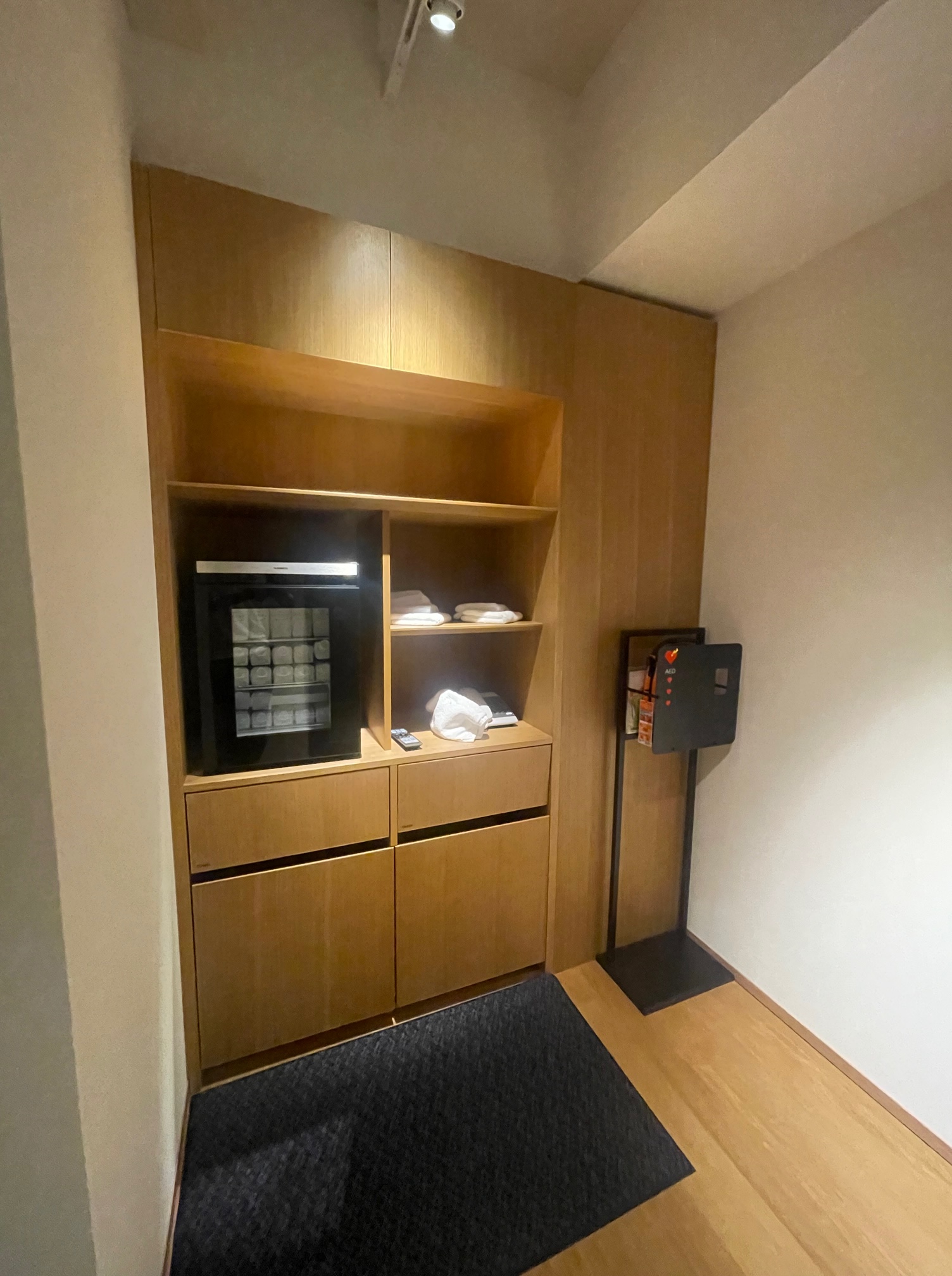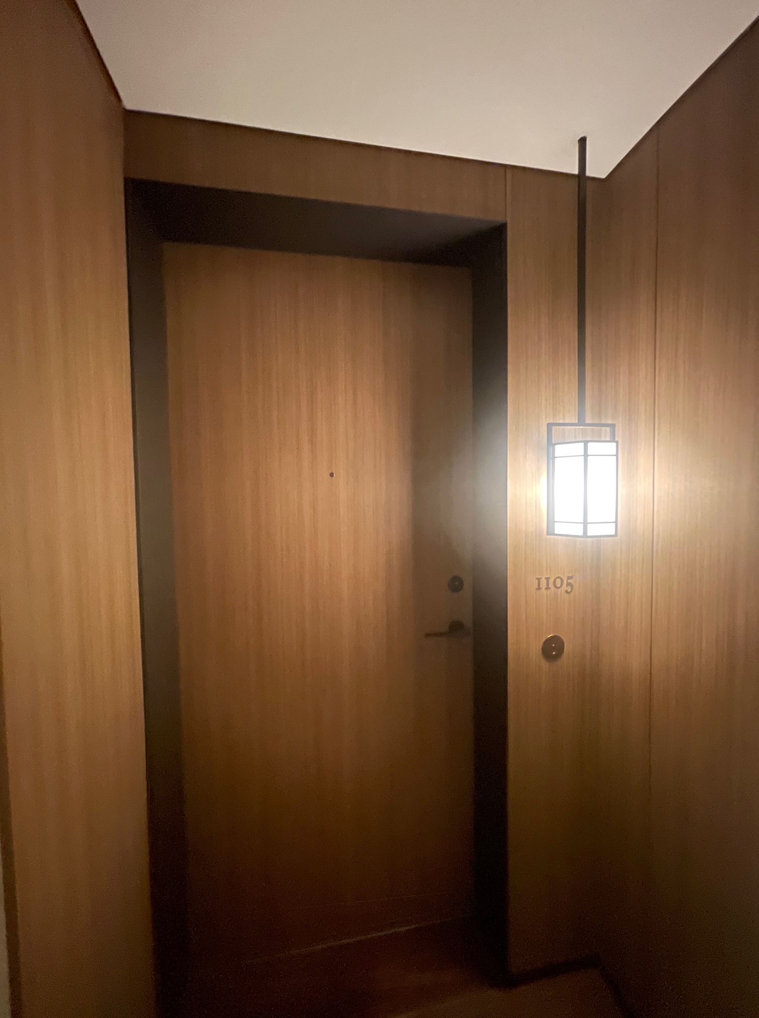 宿泊棟のエントランスを入るとこのような感じです。こちらは打って変わってモダンな感じですが照明などに奈良らしい和の要素を感じます。