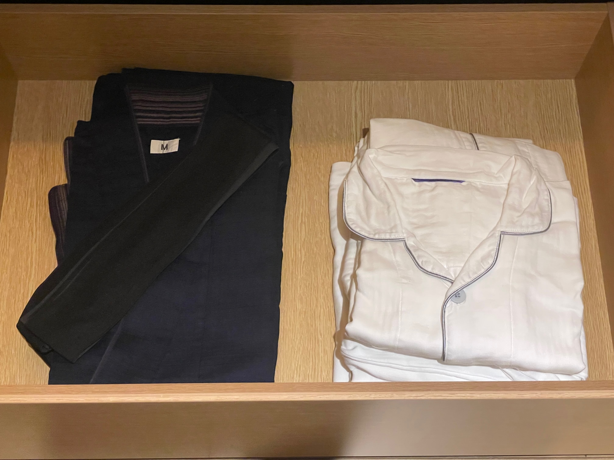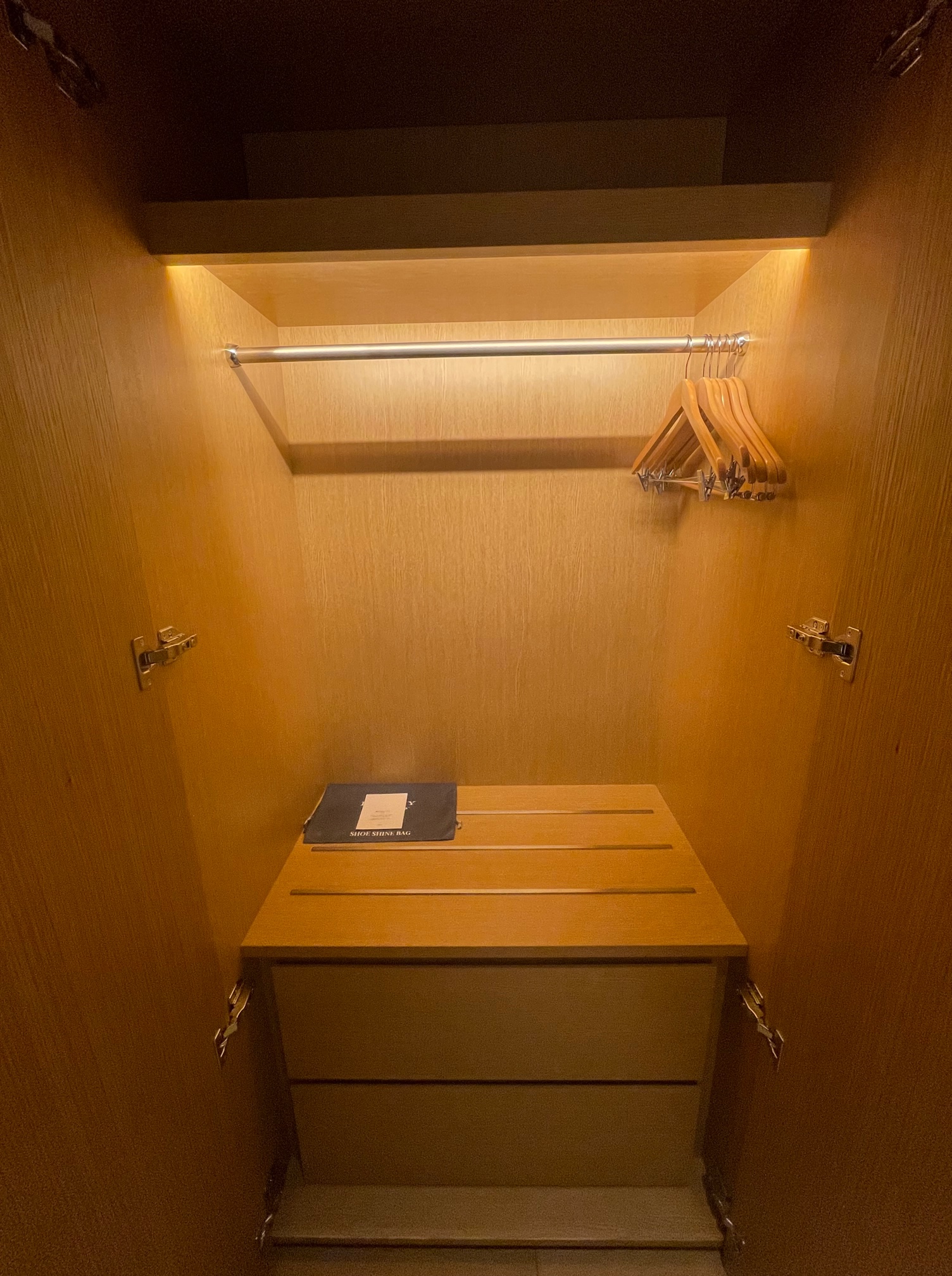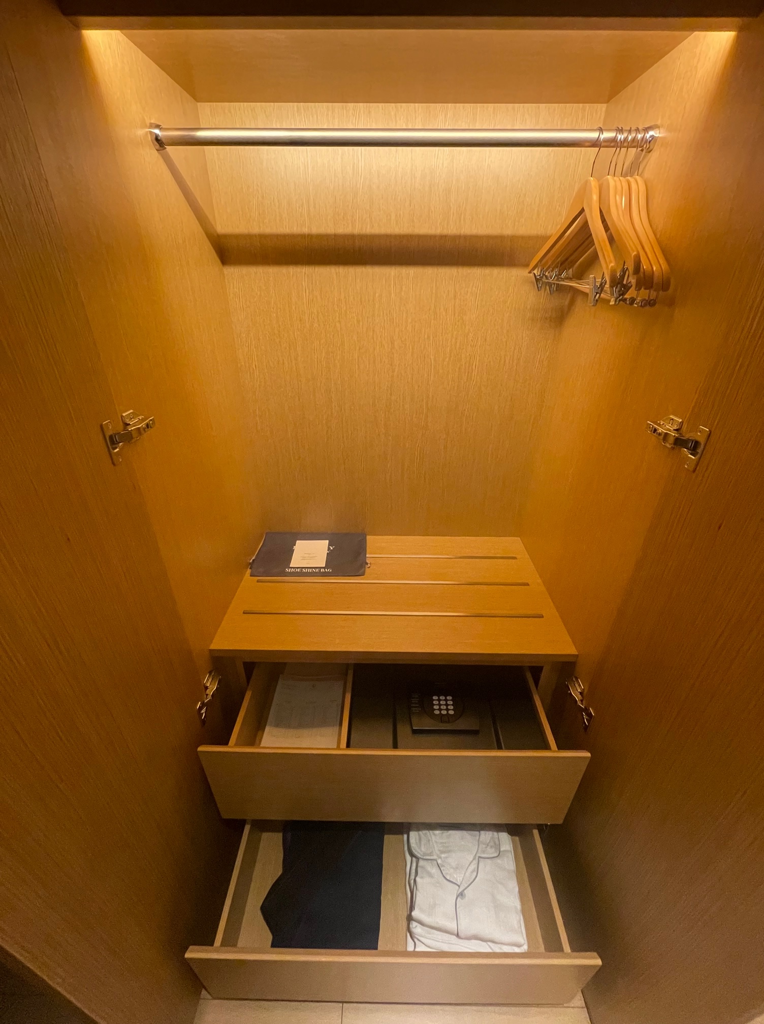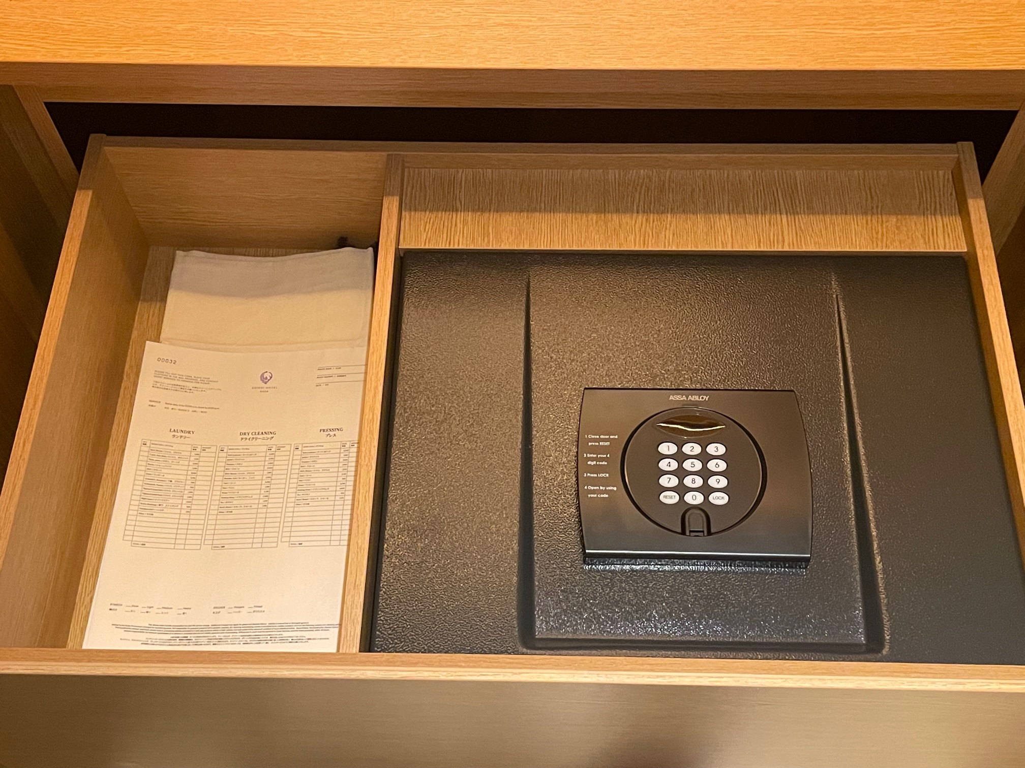 引き出し上段はセーフティーボックスとランドリーバッグ