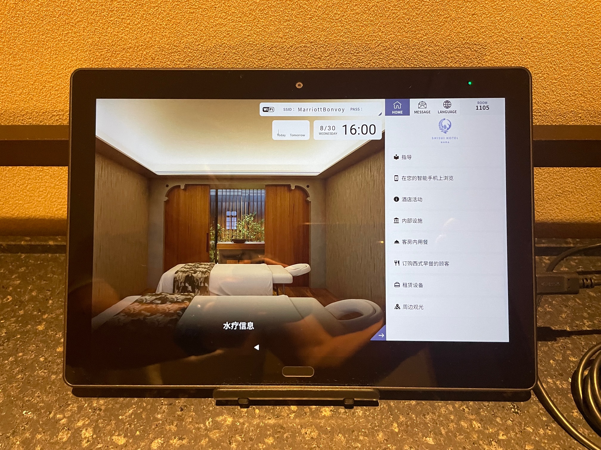 タブレットではホテルの情報を見ることもできますし、インルームダイニングの注文もできます