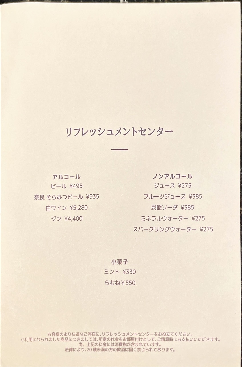 紫翠 ラグジュアリーコレクションホテル 奈良では客室棟から道を挟んだ向かい側、茶寮「世世」(旧興福寺世尊院)で17時~18時の1時間ガーデンディライトという宿泊者全員向けの無料サービスが行われています。同じ「SUI」グループではシャンパンディライトという同様のサービスが行われています。