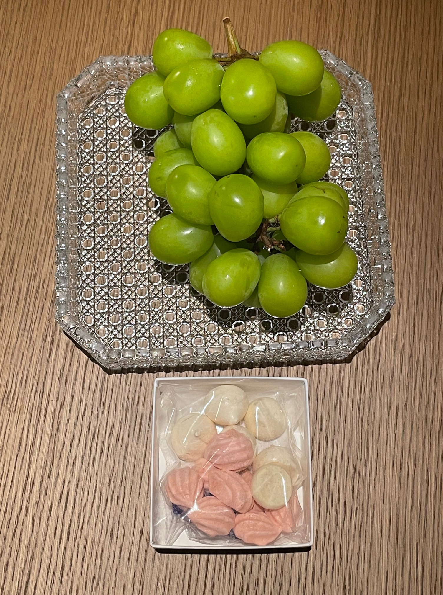 フルーツはシャインマスカット、スイーツははちみつと苺のメレンゲ