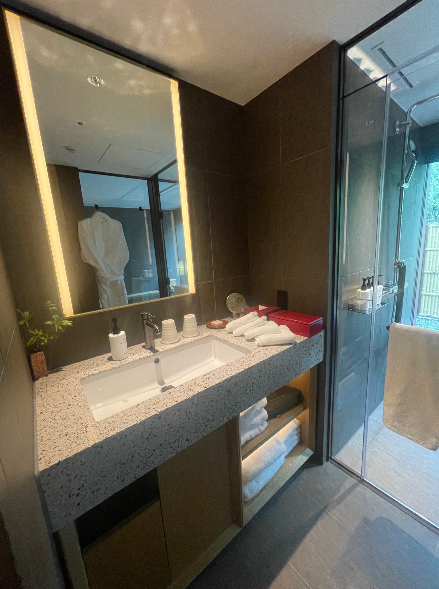 上の写真左手手前の建物はスパとなります。奥の左右の2棟が宿泊棟となり、花鹿(左側)と鳳凰(右側)の2棟から成ります。