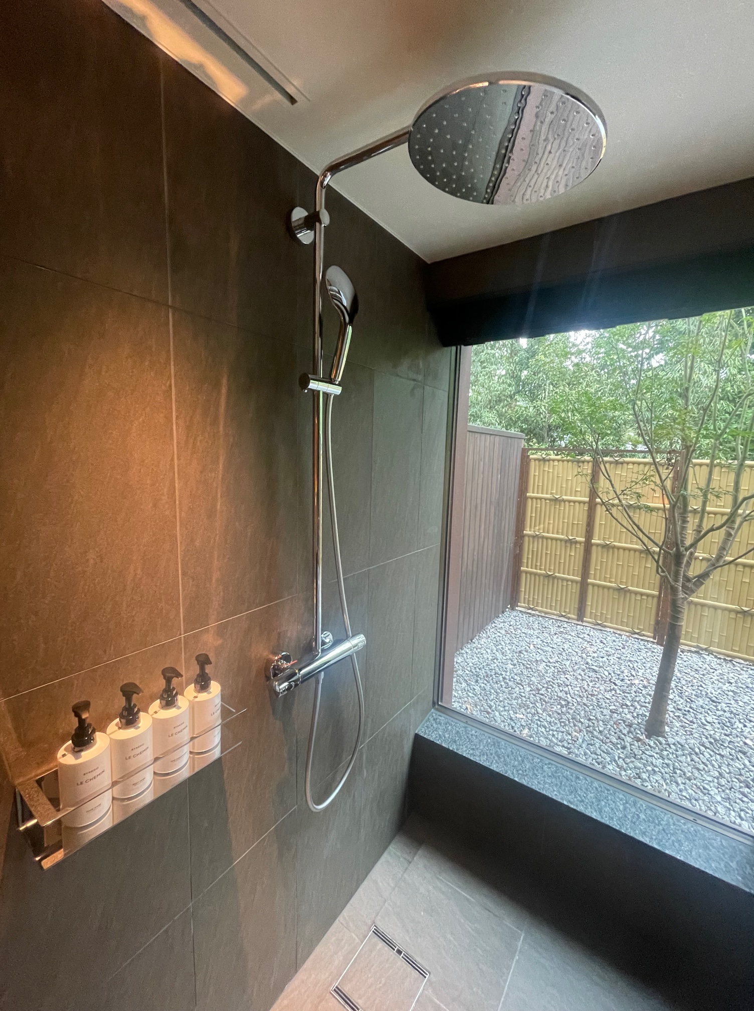 シャワーブースにはレインシャワーとハンドシャワーがあります