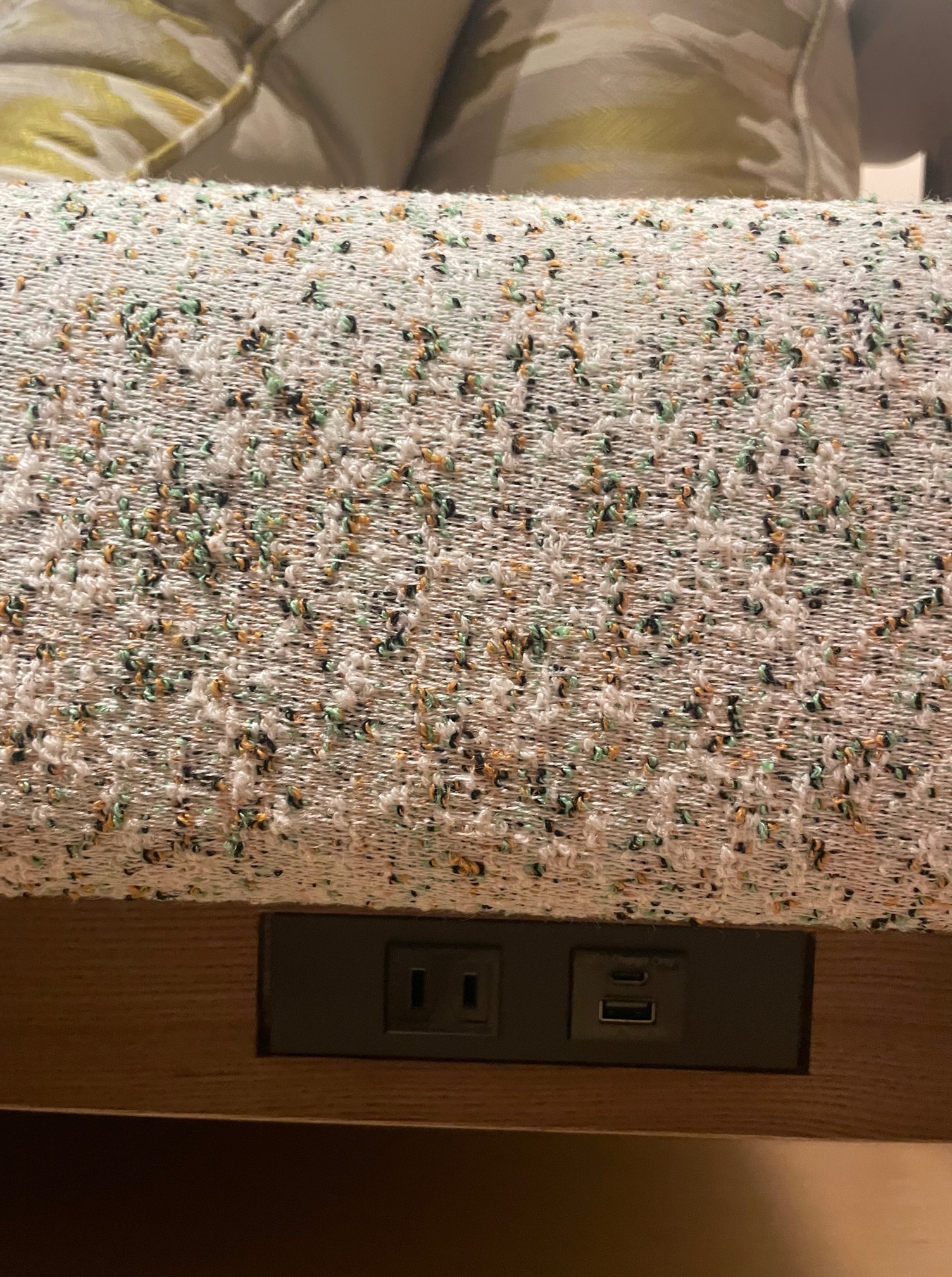ちなみにテーブルで作業しようとしたときにコンセントがないのでPC使いにくいなぁと思っていたら意外なところにコンセントがあり大変便利でした。しかも、コンセントのみならず、USB-A、USB-C まであります