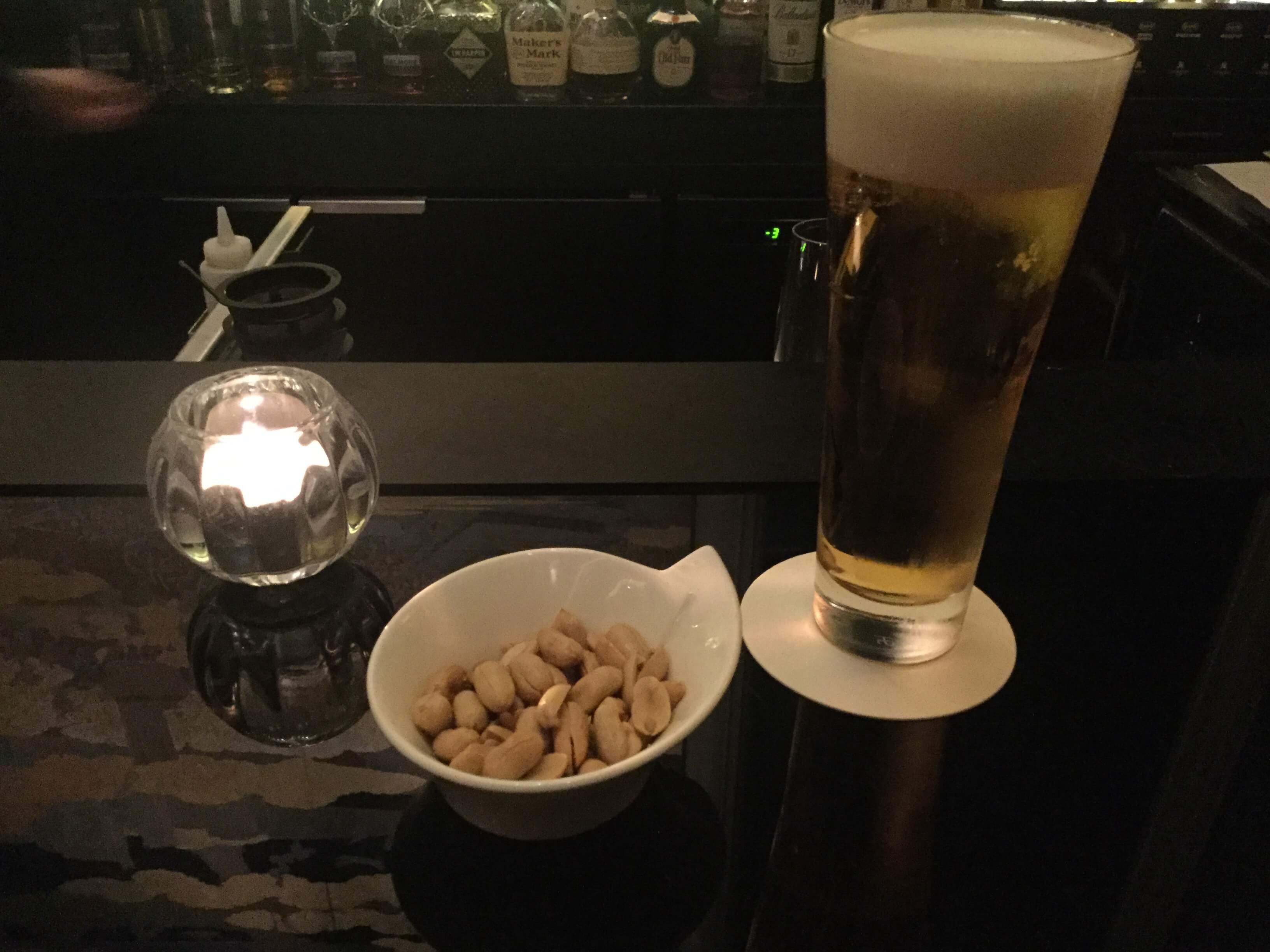 まずはプレミアムモルツを頂きます。一緒にナッツが提供されました。