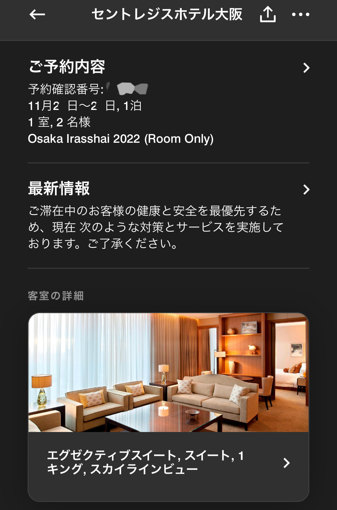 セントレジス大阪はSNAで申請できるのはグランドデラックススイートのみとなっています。