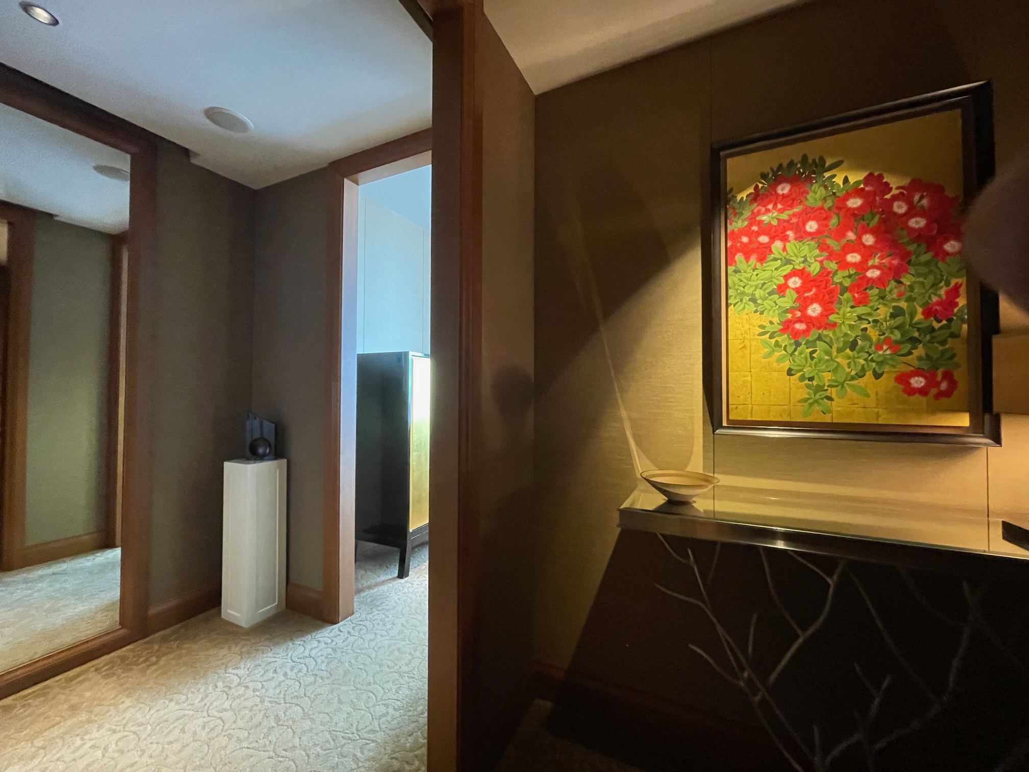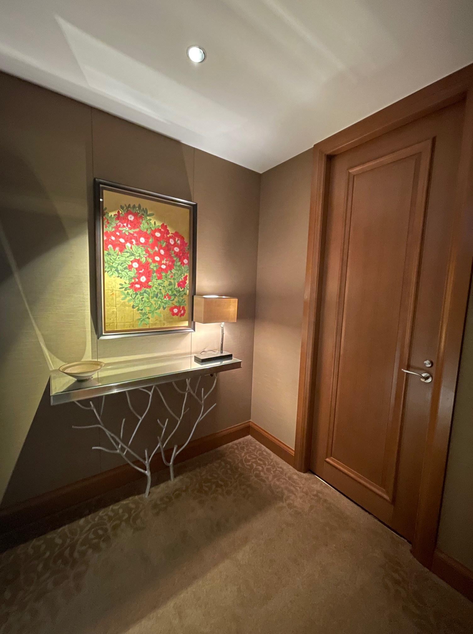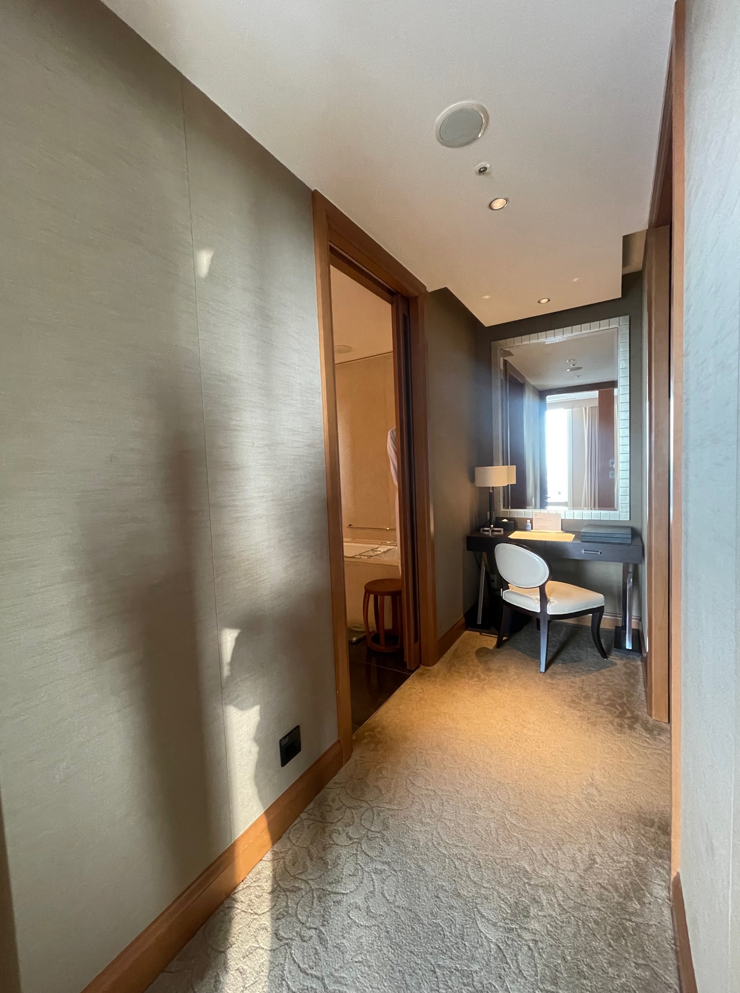 客室に入ってすぐ、ドアの横(写真左側の扉)にはセントレジスに特徴的な「バトラーボックス」があります。ランドリーやシューシャインをお願いしたいときにはこちらのボックスに入れておくと持って行ってくれます。また、新聞やランドリー、シューシャイン後の靴などはこのボックス内に届けられます。プライバシーを損なうことなく、いちいち部屋の外に出なくても受け取ることができて便利です。