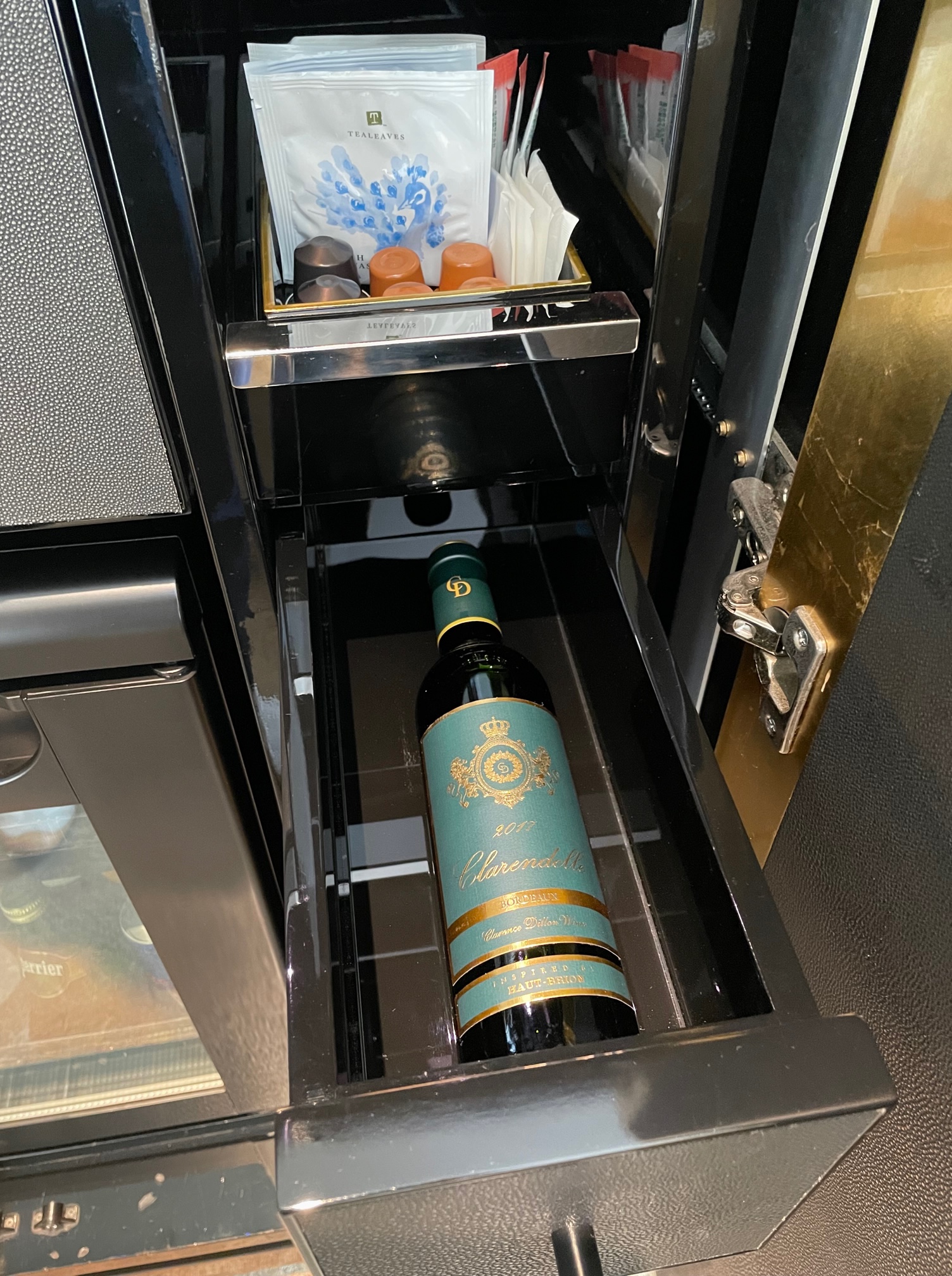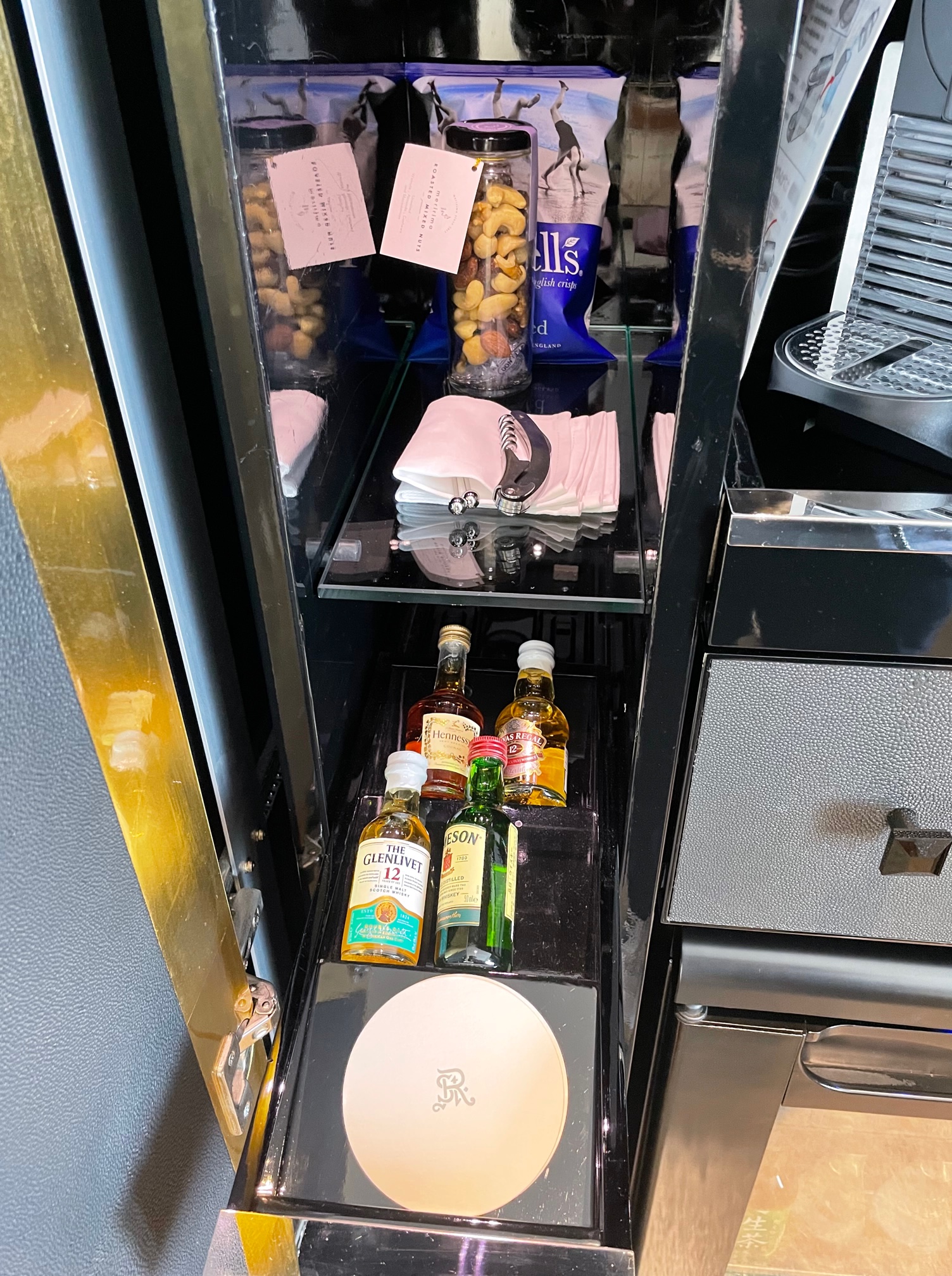左側にはミニバーのナッツやスナック、ミニボトルなど