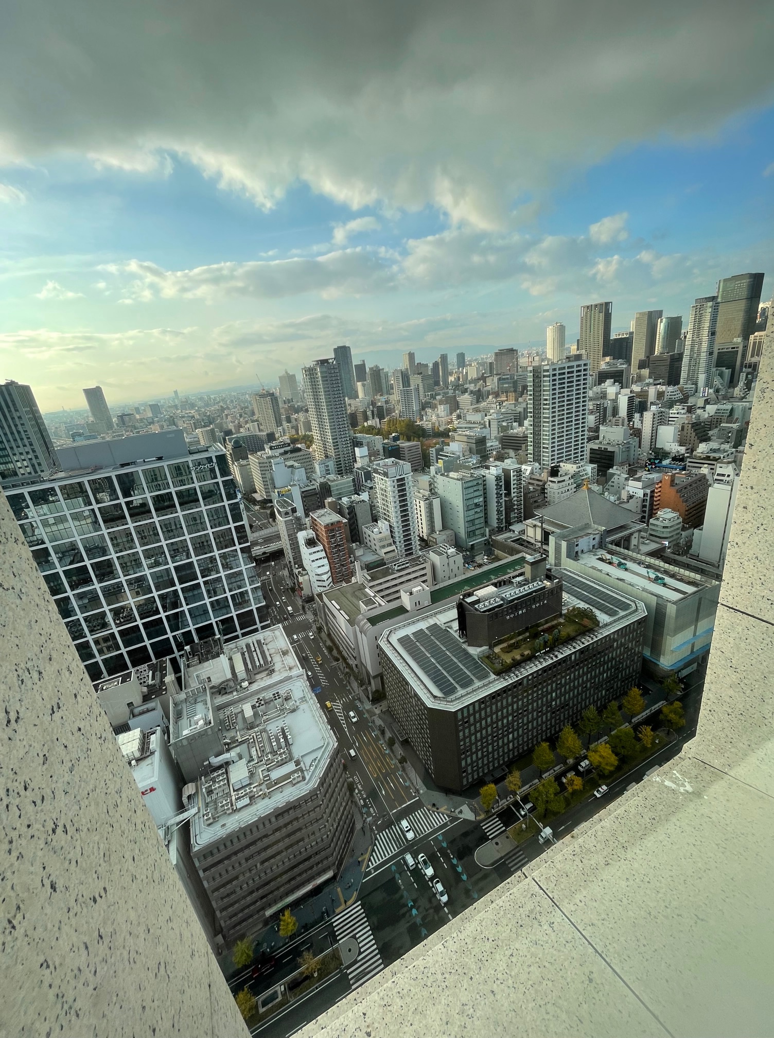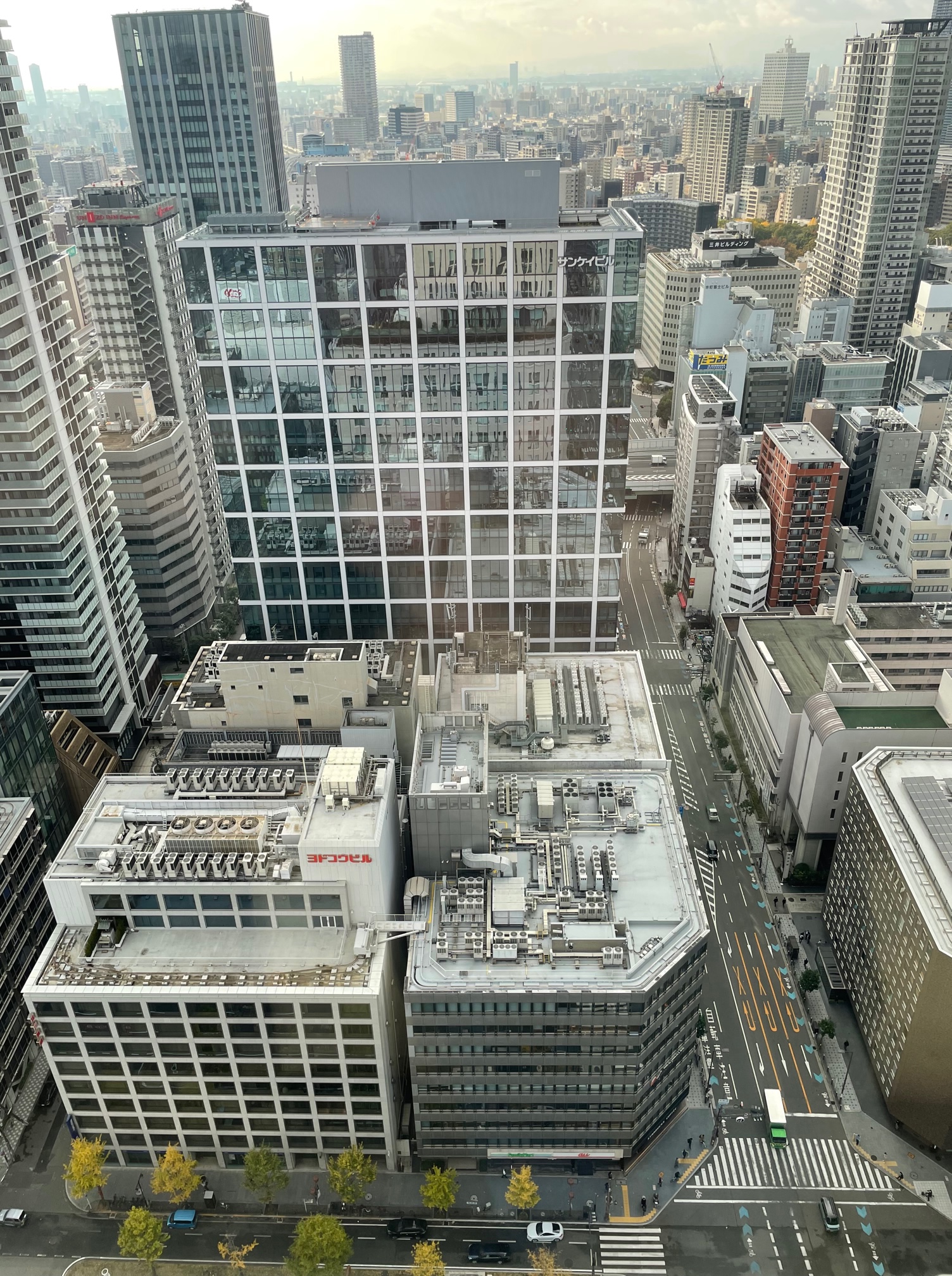 御堂筋側、方角で言うと西向きで景色はこんな感じでなかなかよいです