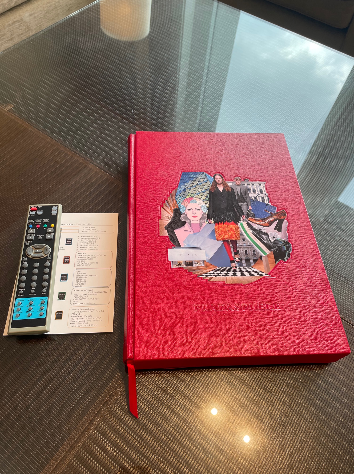 テーブルの上にはPRADAの写真集?本?が置かれています