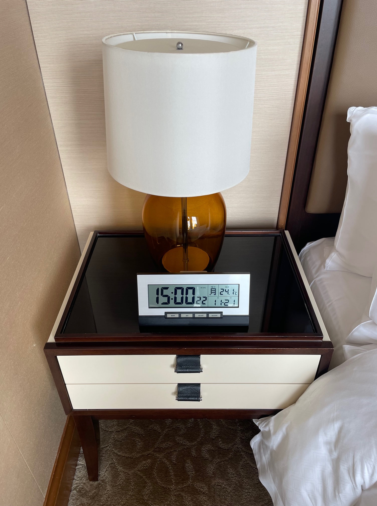 枕元のガラスタッチパネルには電源、照明、カーテン、レースカーテン、エアコンなどのボタンがあり、ベッドにいたまま全てオン・オフにできます。