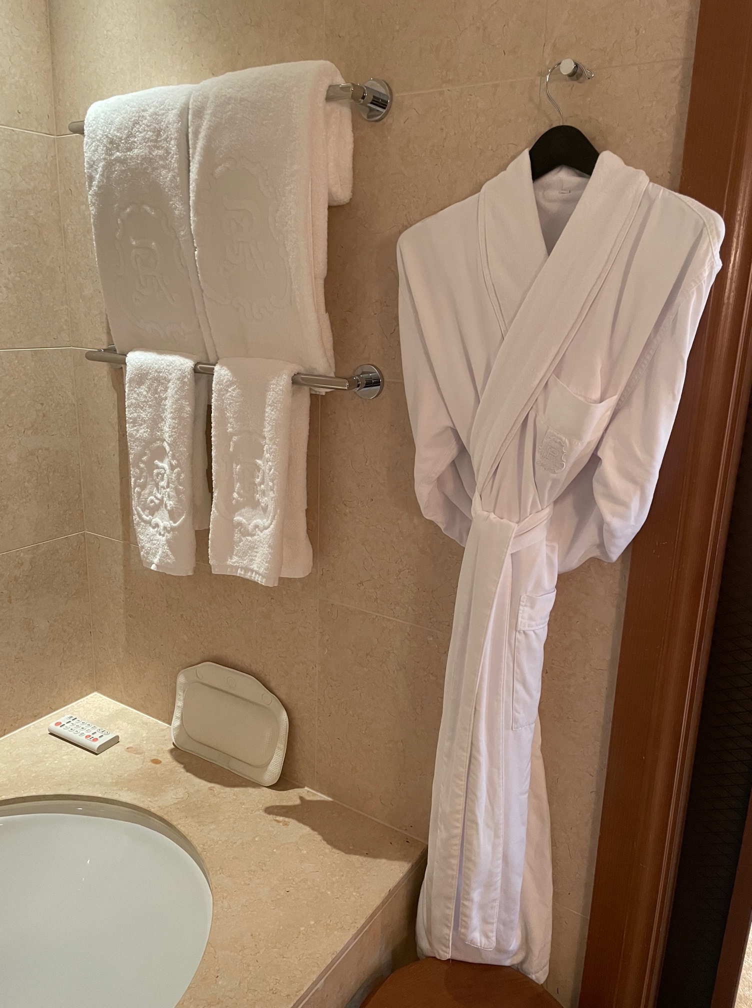 浴衣にはセントレジスのロゴが入っています。ニューヨークのセントレジスホテルがフィフスアベニューの55ストリートにあることにちなんだ「5TH 55」の文字も入っていますね