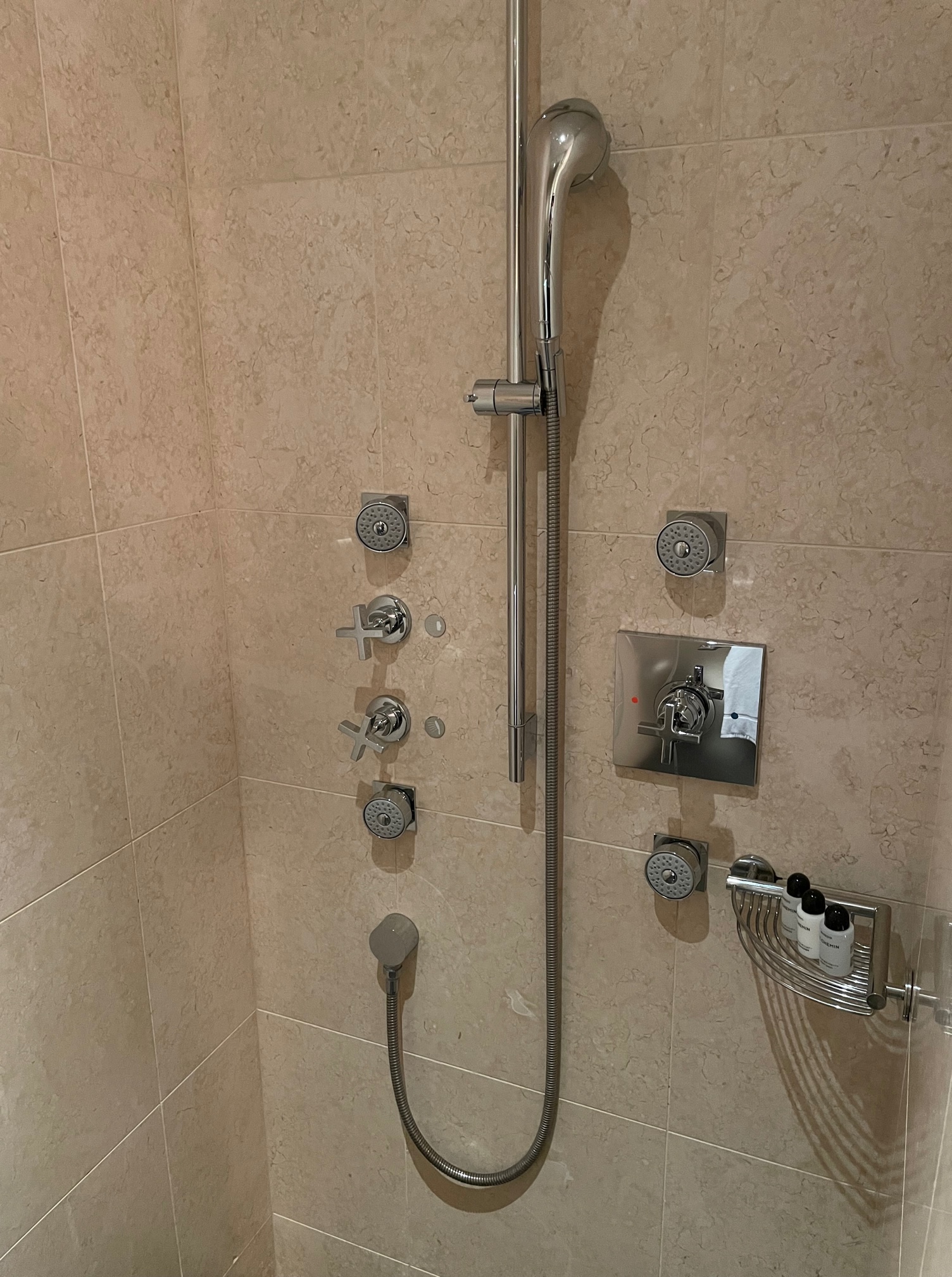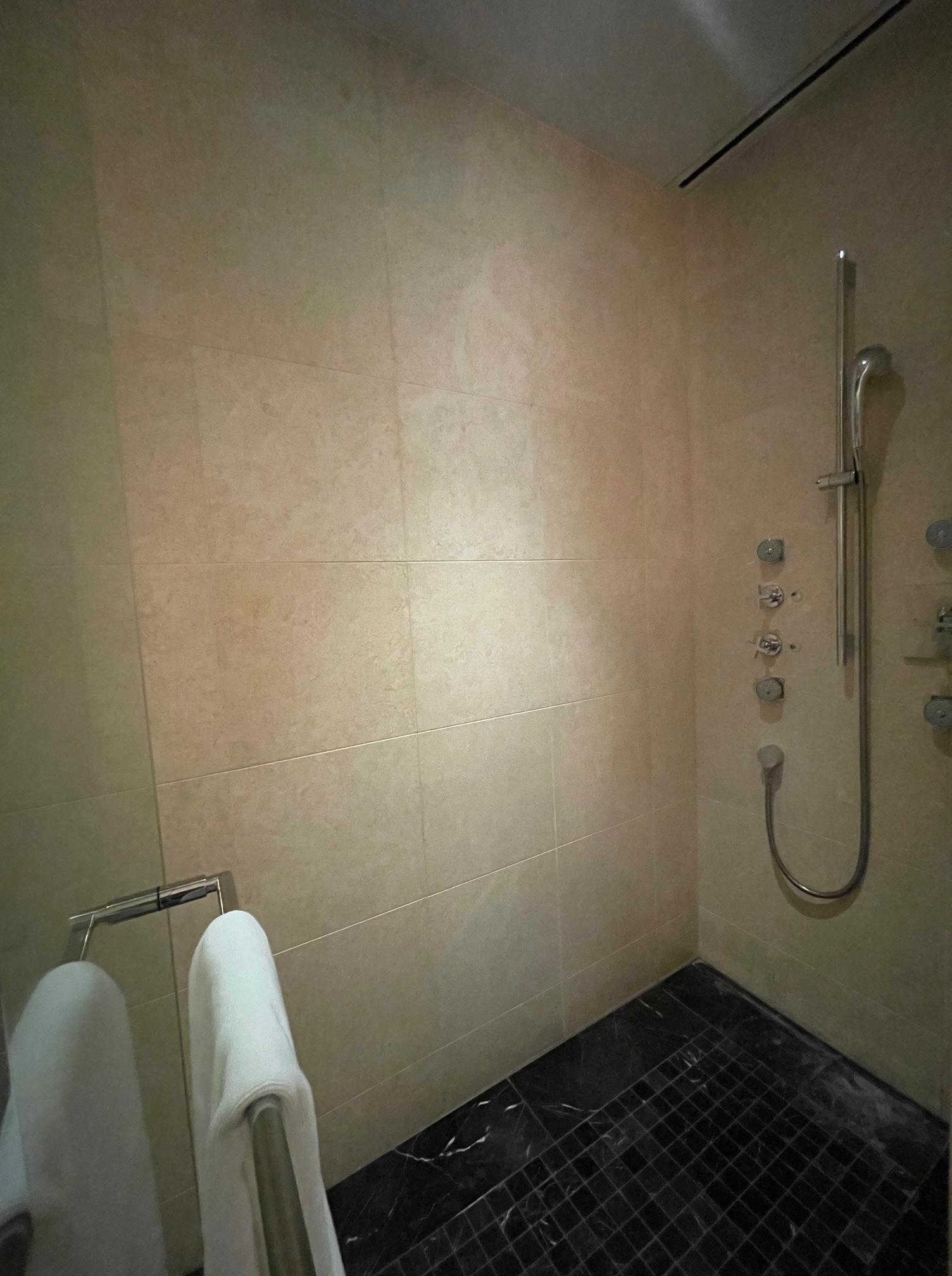 こういったホテルはレインシャワーがあることが多いですが、こちらはレインシャワーはなく壁の4か所から吹き出るボディシャワーとなっています。