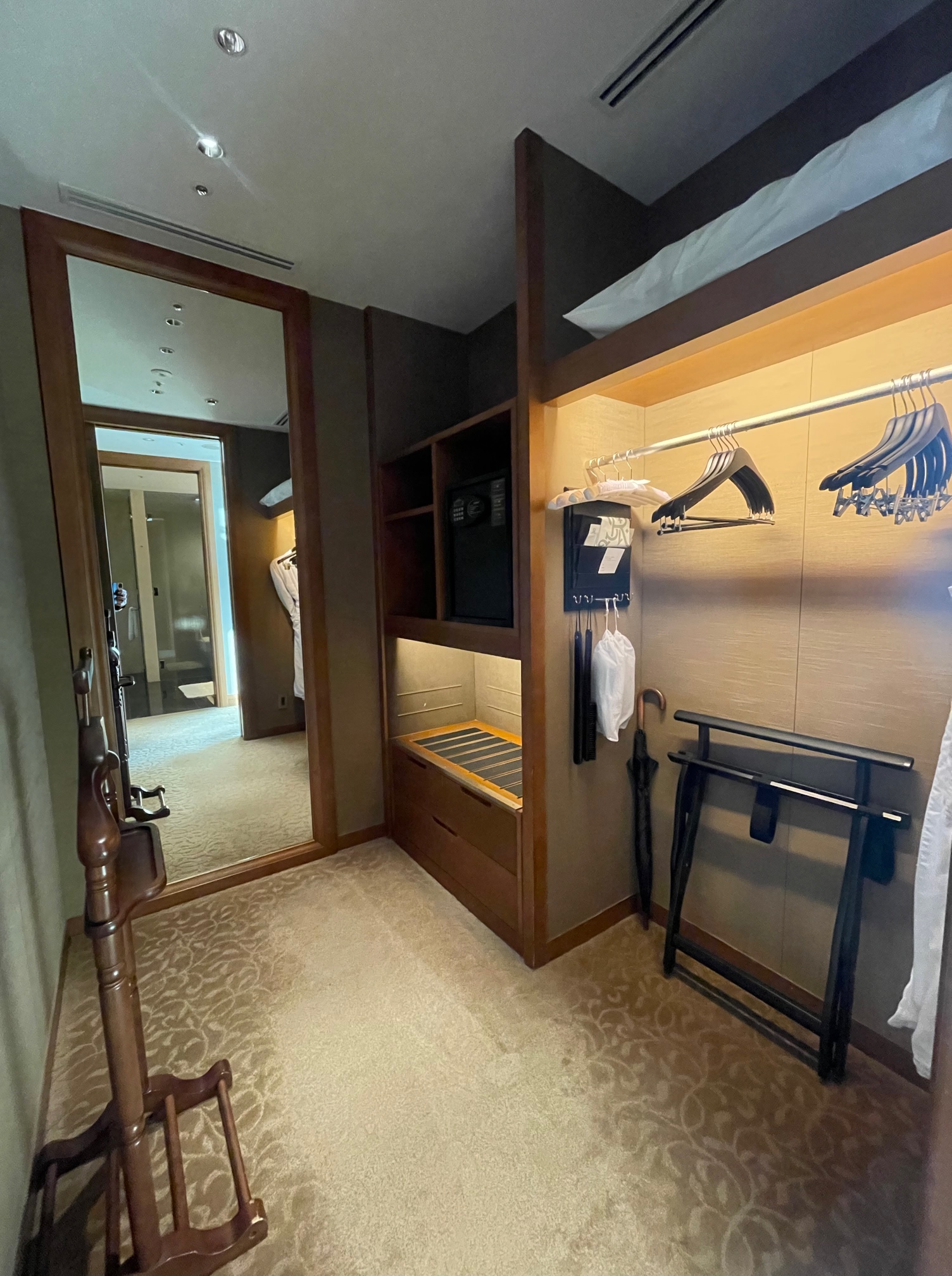 ウォークインクローゼットはとても広々としています。長期滞在の大きな荷物があっても問題なさそうです。