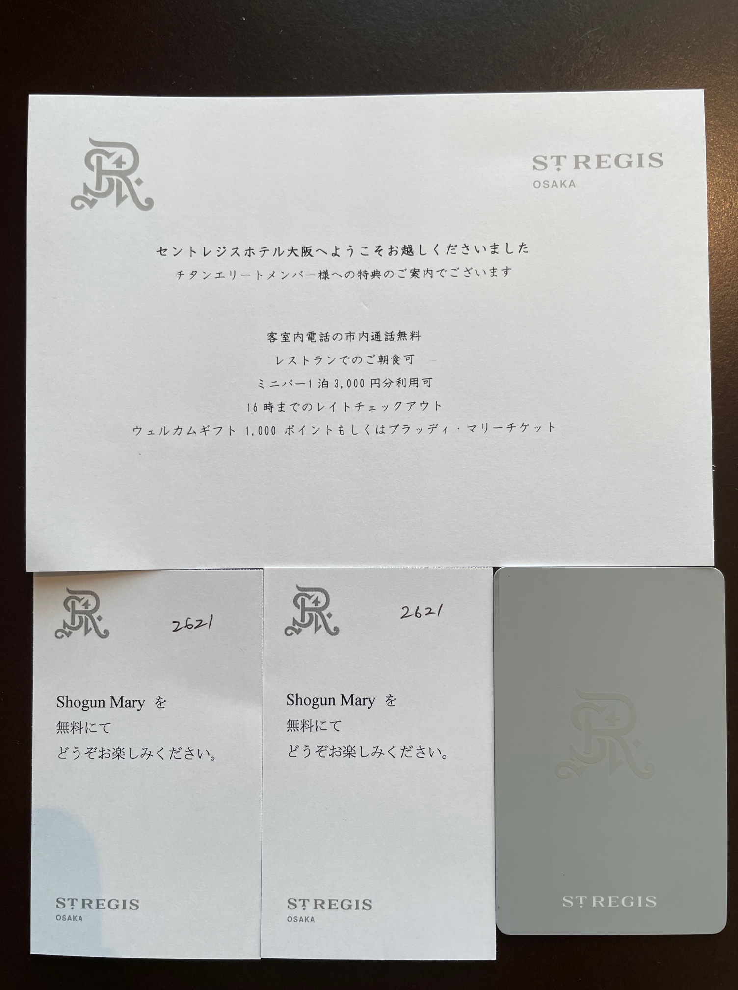 セントレジス大阪 チタンエリート会員特典は以下の通りです