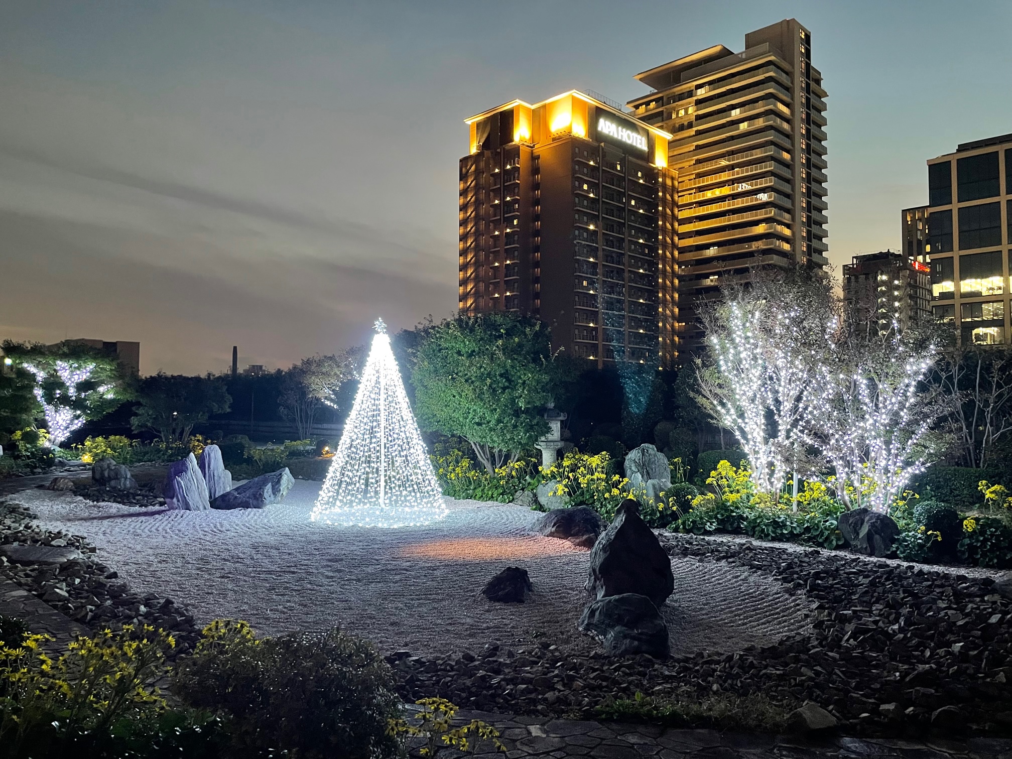 12階には日本庭園もあります。この時期はライトアップされて夜はキレイですね。