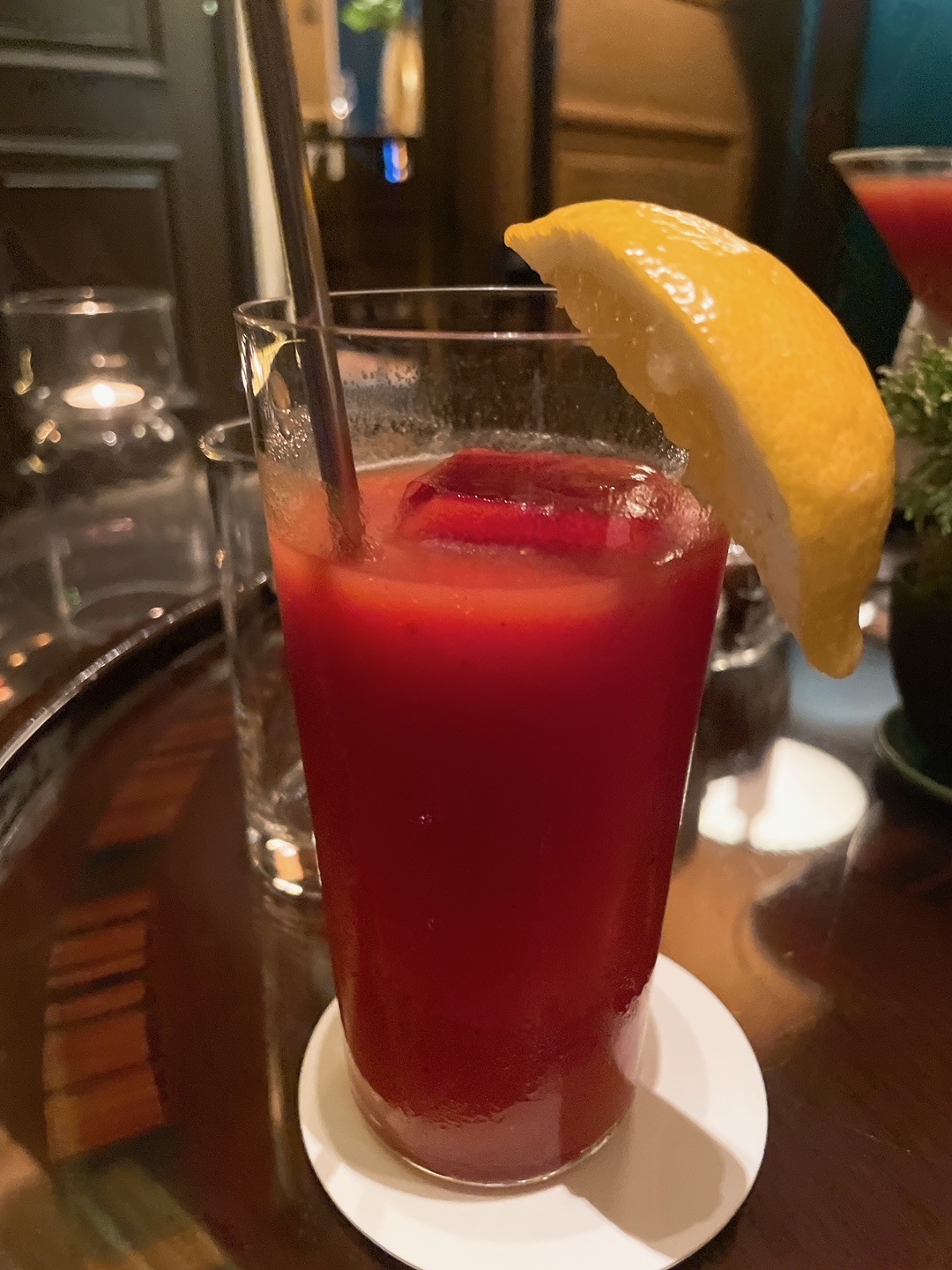 マリオットのポイント1000ポイントまたはブラッディ・マリーのチケットが選択できます。せっかくですのでセントレジスオリジナルのブラッディマリー「レッドスナッパー」を飲んできました。ウォッカとトマトジュース、セロリにブラックペッパー、タバスコを効かせたパンチのある味わいです。