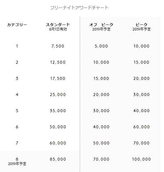 2018年マリオットとSPGのプログラム統合によりカテゴリー8が新設されました。マリオット・SPGプログラム統合については以下の記事をご参照ください