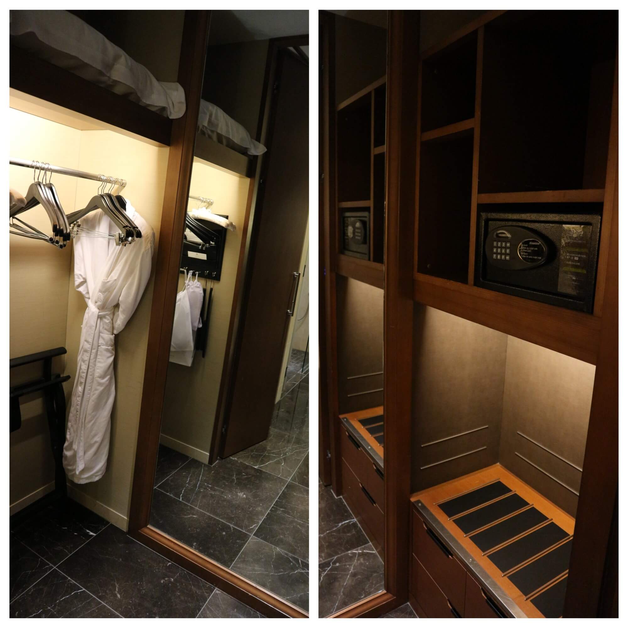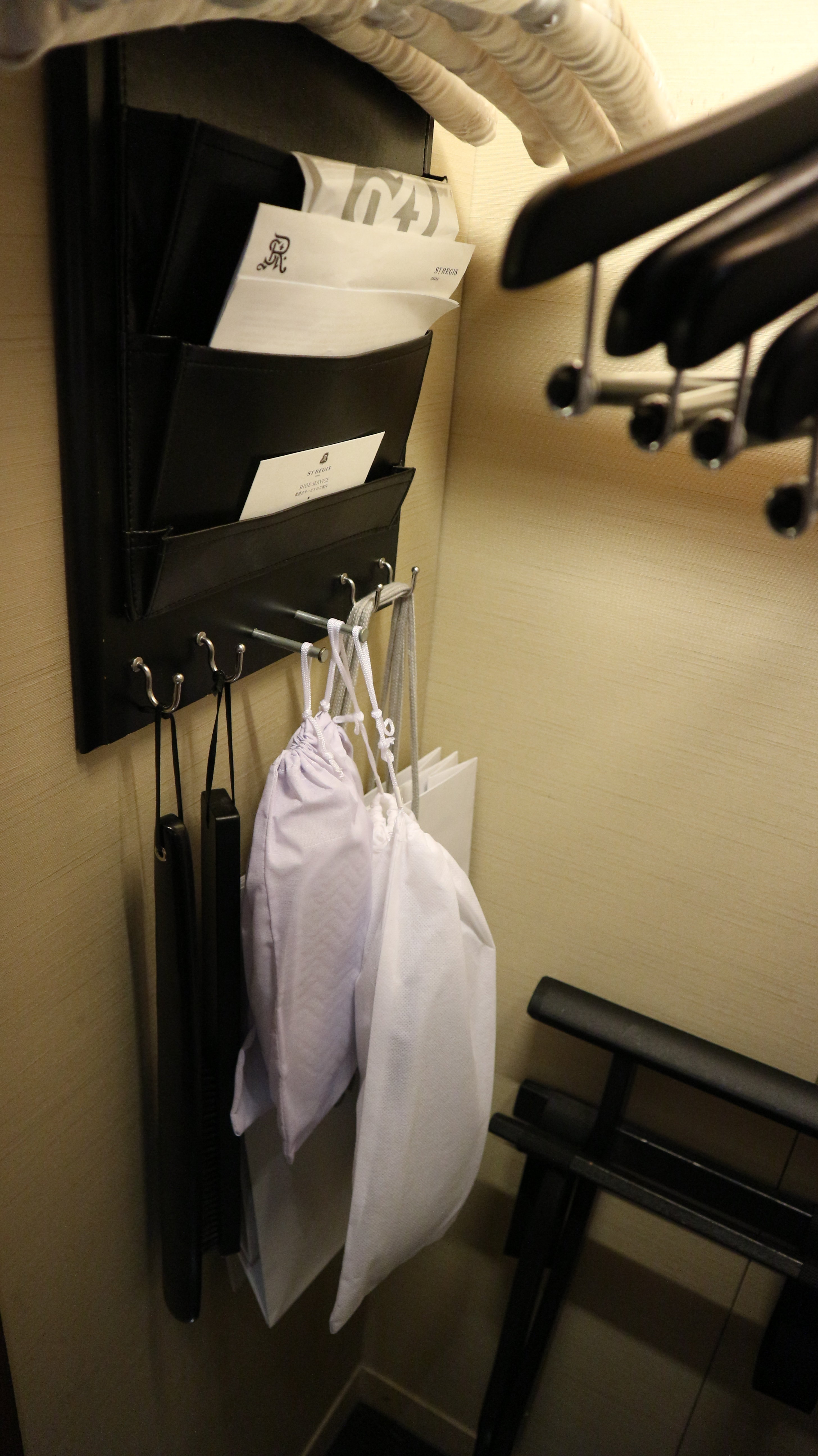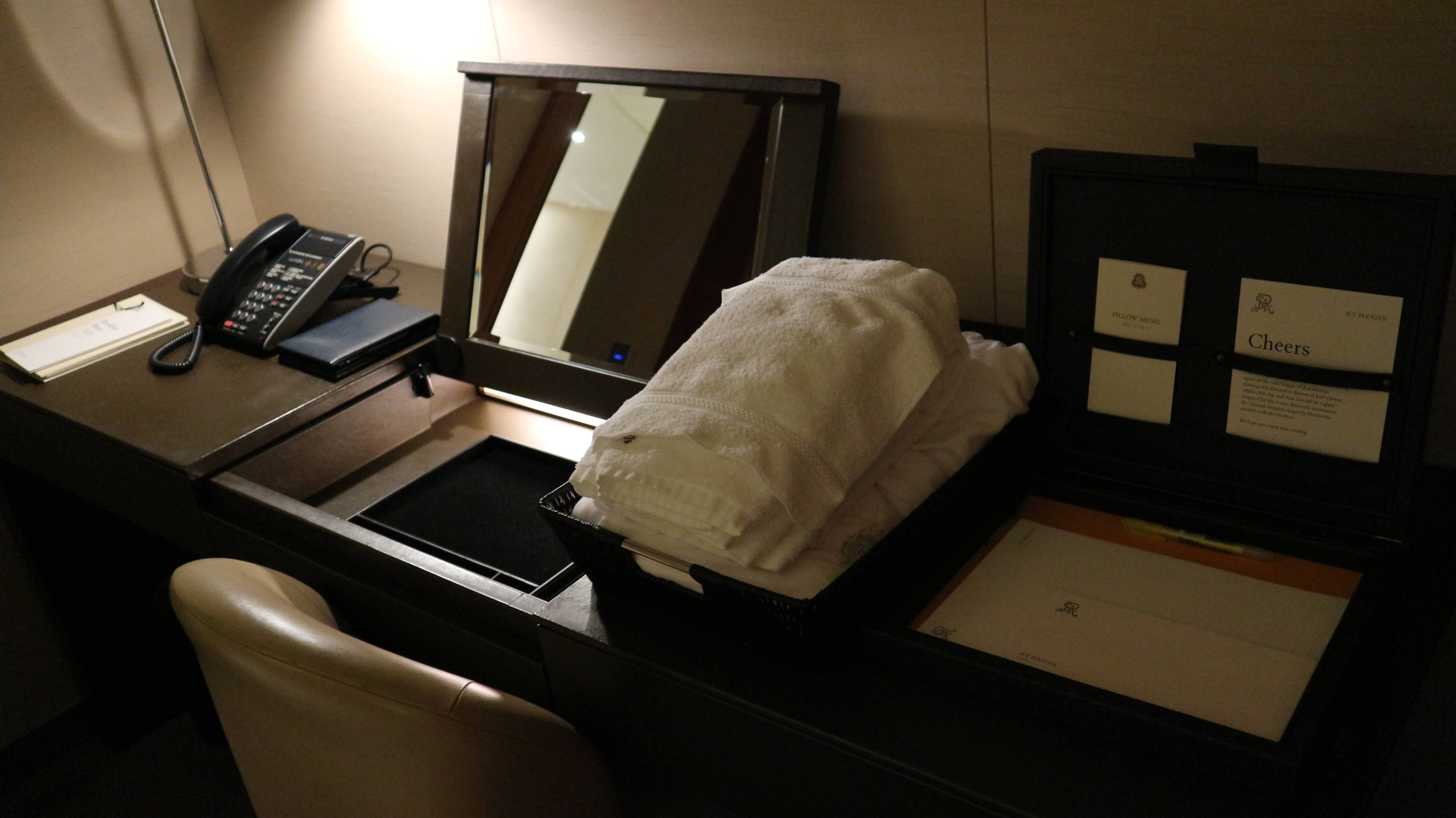 客室に入ってすぐ、ドアの横にはセントレジスに特徴的な「バトラーボックス」があります。ランドリーやシューシャインをお願いしたいときにはこちらのボックスに入れておくと持って行ってくれます。また、新聞やランドリー、シューシャイン後の靴などはこのボックス内に届けられます。プライバシーを損なうことなく、いちいち部屋の外に出なくても受け取ることができて便利です。