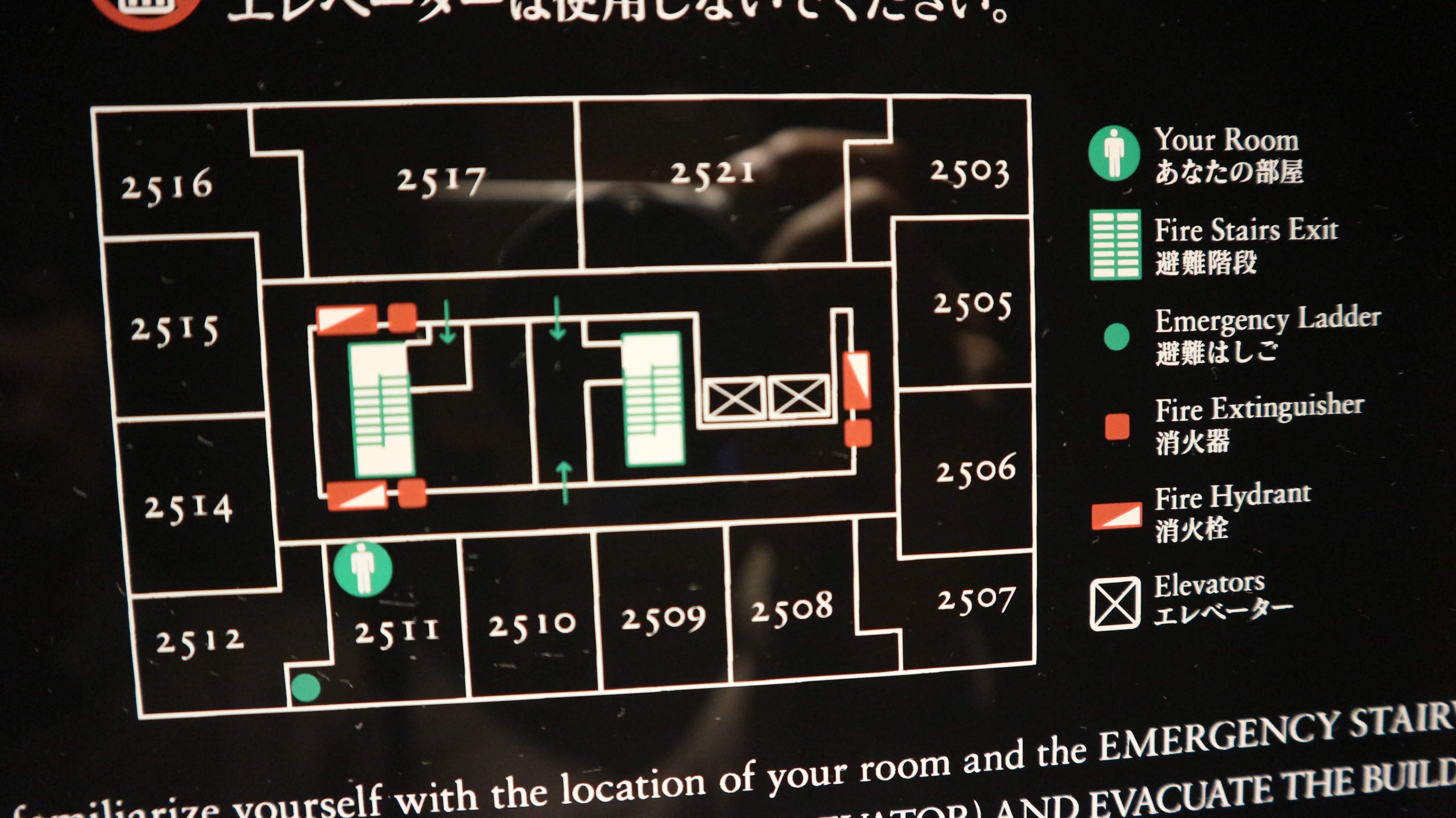 今回は25階の部屋にして頂きました。24階以上の高層階は<「スカイラインフロア」と呼ばれ、部屋も「スカイライン」という名称がついて少し値段も違うようです。ですから正確には今回の部屋は「スカイライングランドデラックス」ということになります。