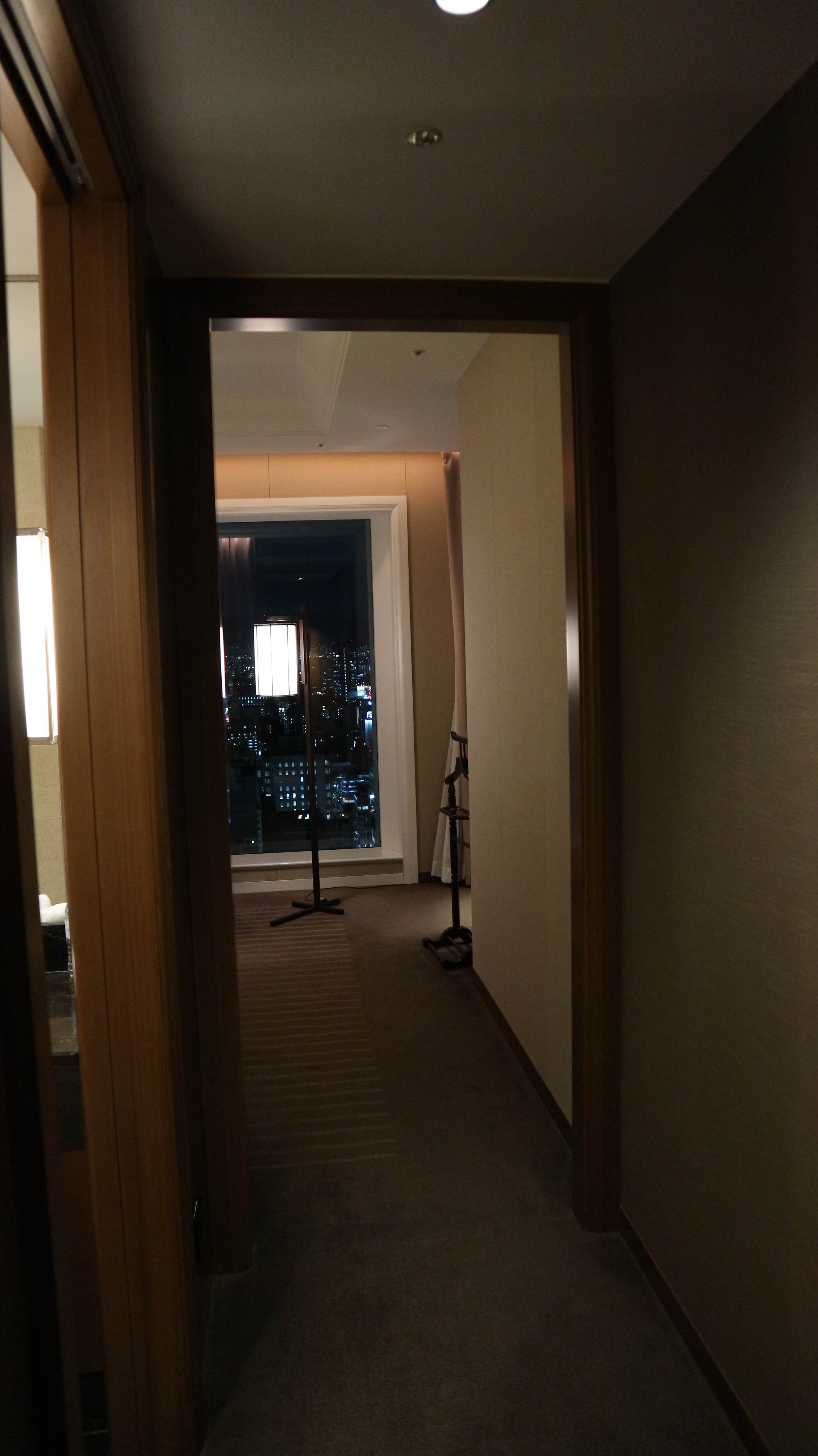 部屋の中に入ります。手前左側の明かりが洗面所、バスルームの入り口、奥がベッドルームとなっています。