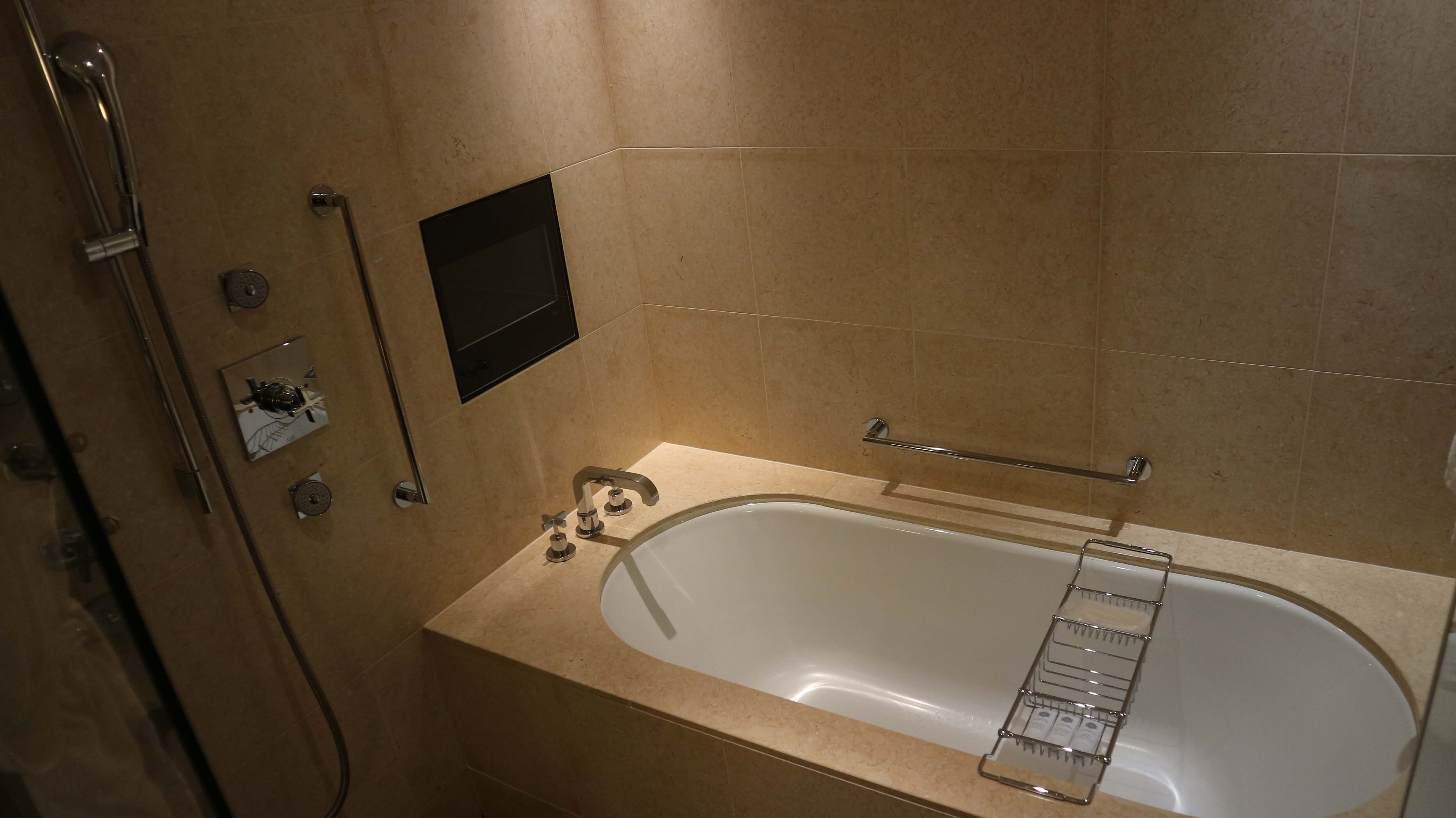 大理石を使った贅沢な造りのバスルームはテレビがあり、テレビを見ながらゆっくり入浴できます