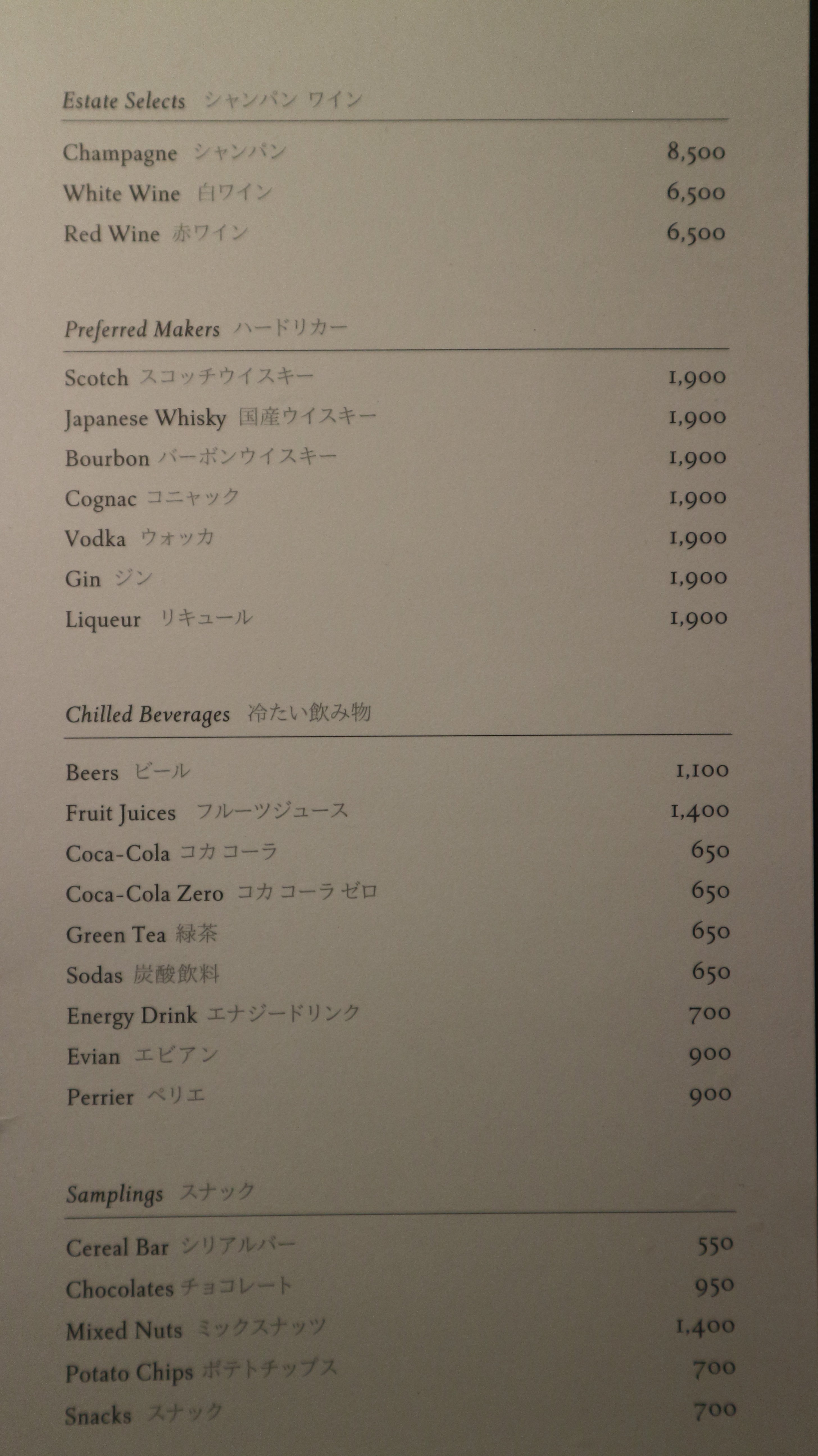 今回私は飲み物をお願いしてコーヒーを持って来て頂いた以外はバトラーサービスは利用しませんでした。せっかくの機会なので革靴でも持って来てシューシャインサービスお願いすればよかったかなぁと貧乏根性丸出しで後悔しています(^^;)
