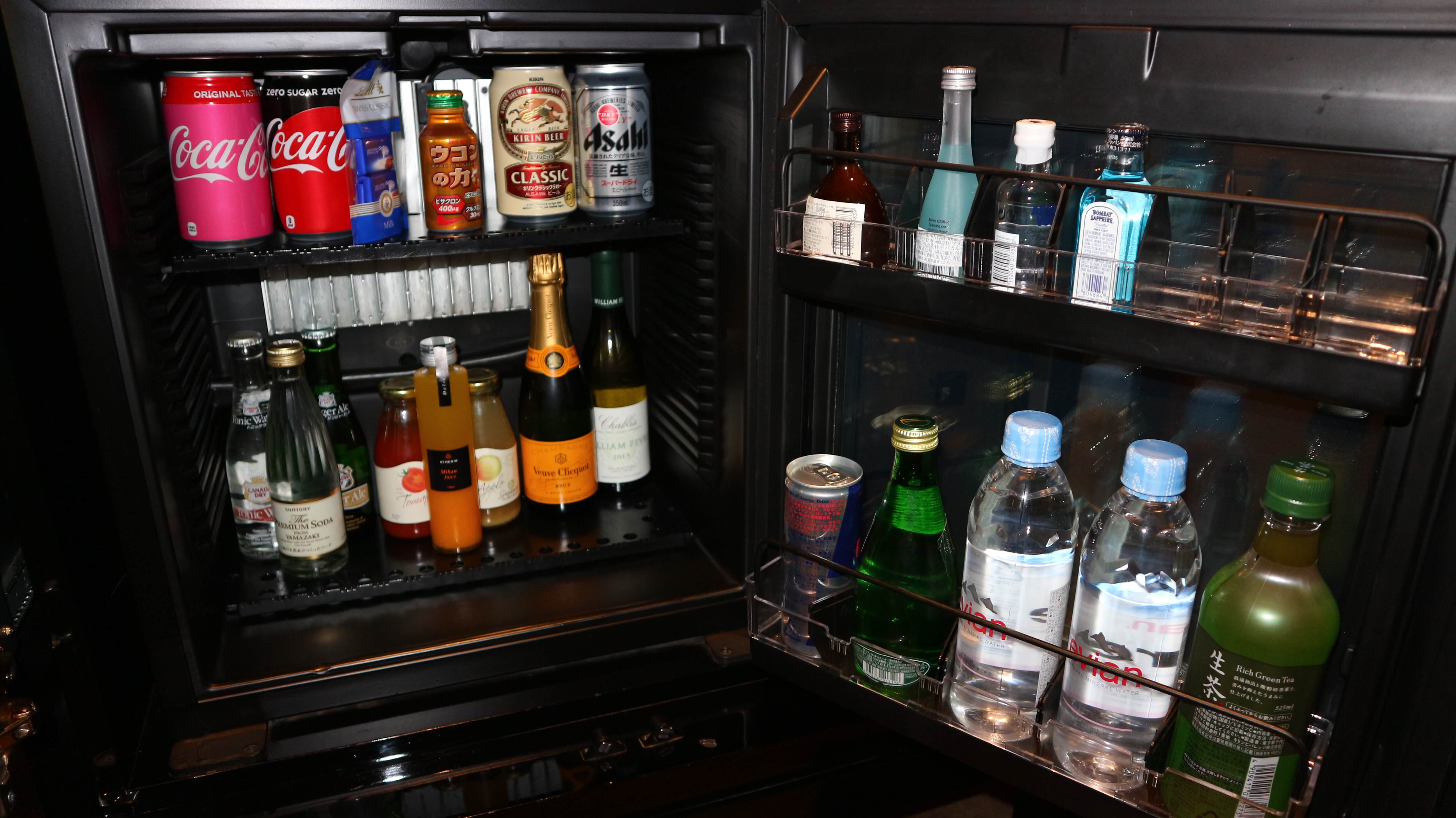 セントレジス大阪にはエグゼクティブラウンジがありませんので、その代わりのサービスと思われます。ミニバーの値段は以下のようになっており、缶ビール1本1100円とかなりお高いです…