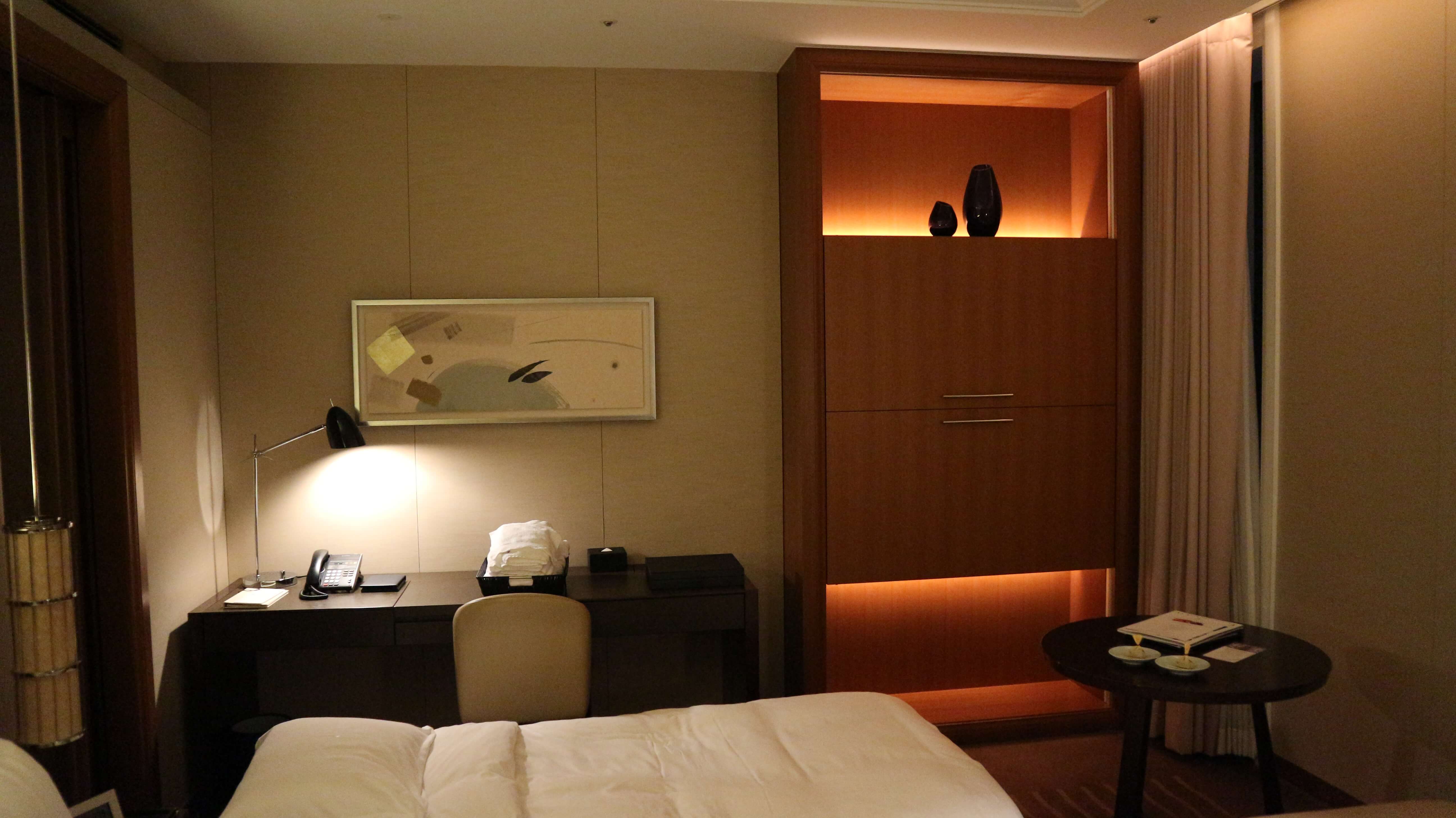 しかも、デラックスはエキストラベッドを入れることができないということで、週末でほぼ満室のところグランドデラックスルームにアップグレードして頂きました。さらに「スカイラインフロア」と呼ばれる24階以上の高層階の部屋にして頂きました。この日のスカイライングランドデラックスキングは1泊76636円(税・サ込95182円)ととても高かったので有難い話です。