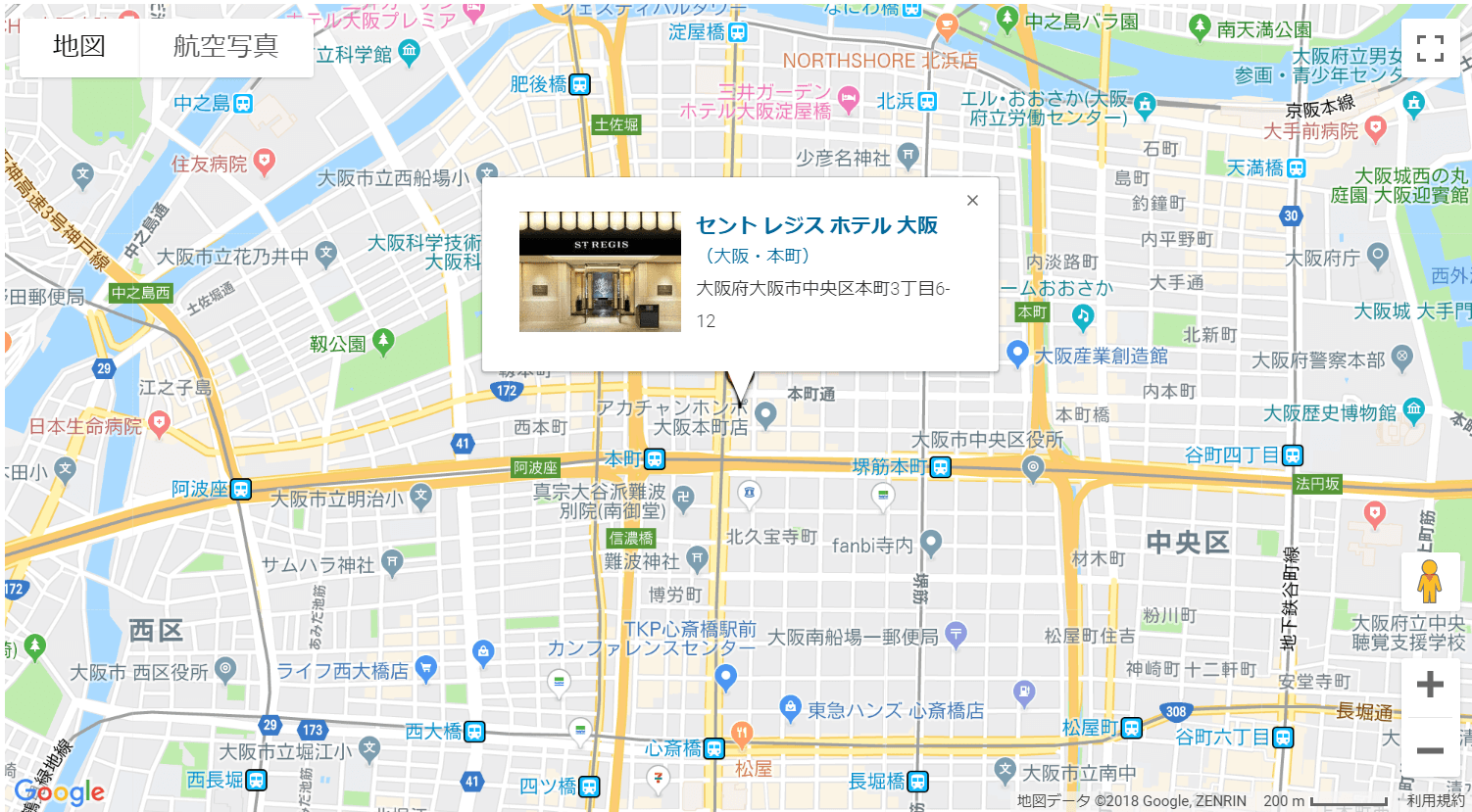 大阪メトロ本町駅7番出口出てすぐにある本町ガーデンシティ内にセントレジス大阪は入っています。