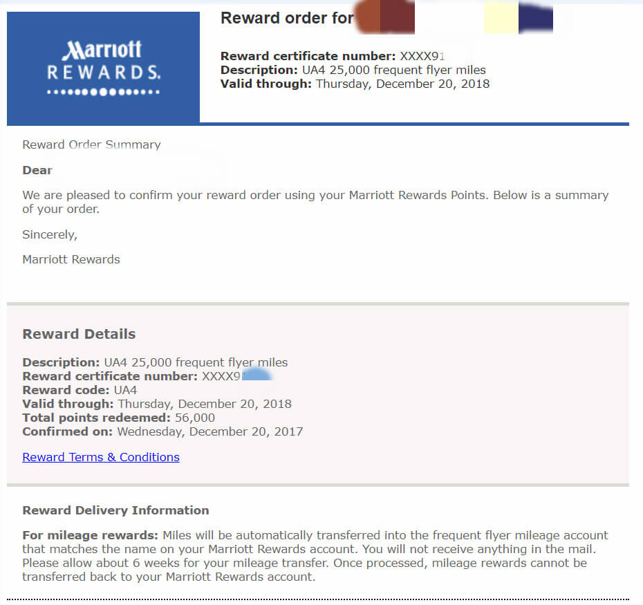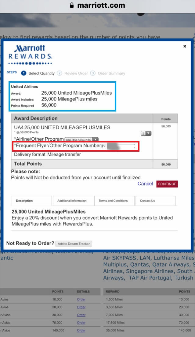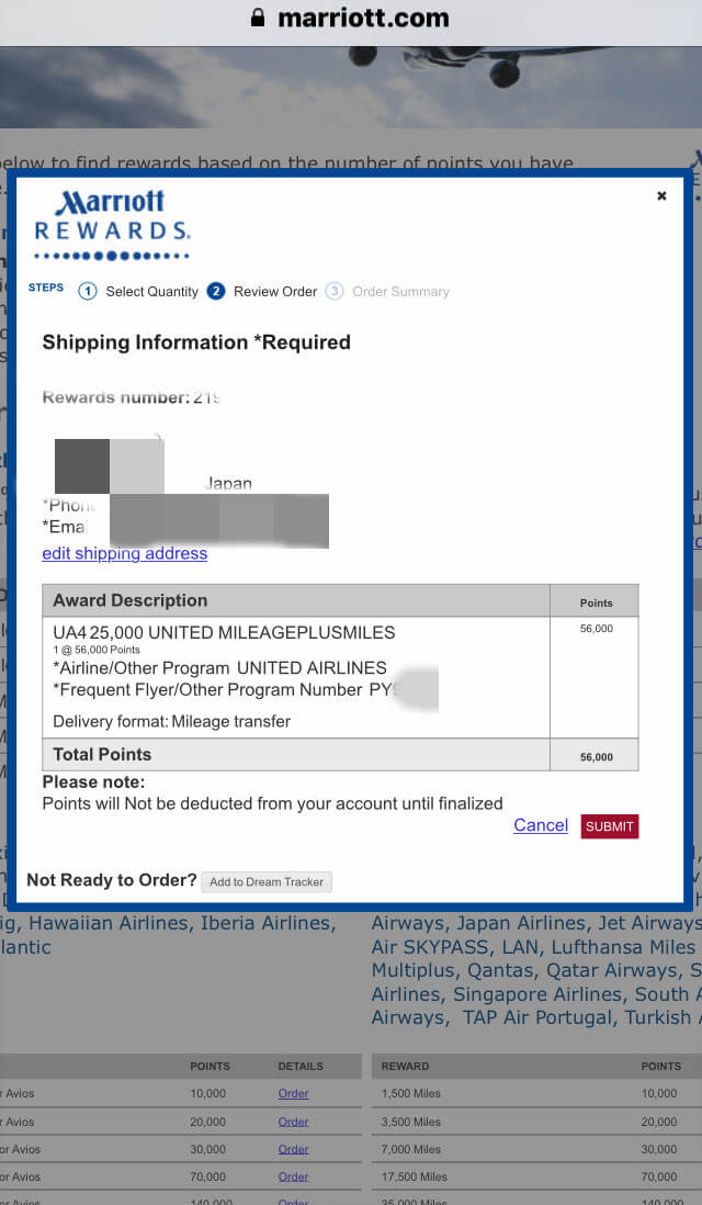 第二段階:マリオットリワードポイントをユナイテッドマイレージプラスに交換