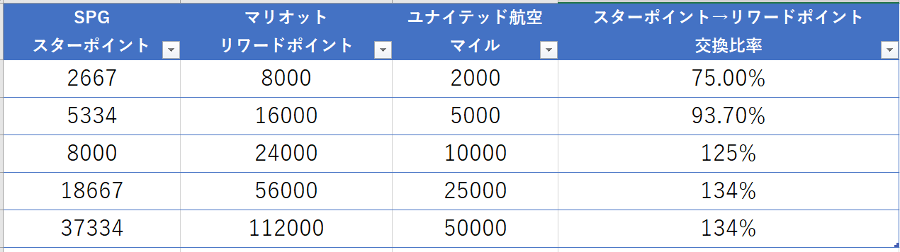 SPGスターポイントからユナイテッド航空マイルへの直接交換は効率が悪い