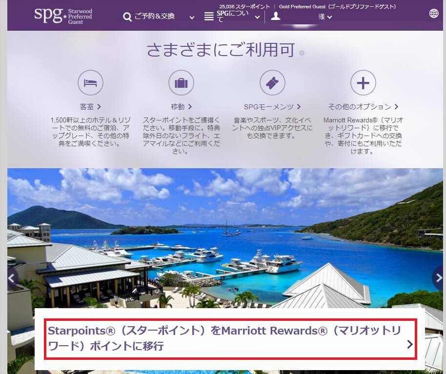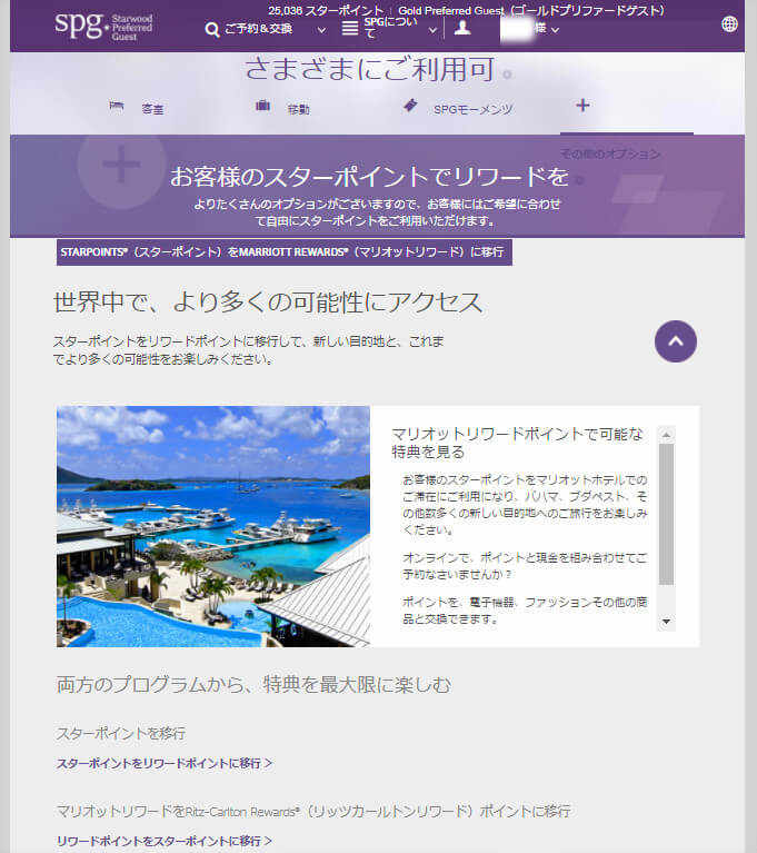 まずはSPGスターポイントをマリオットリワードポイントに交換しましょう!