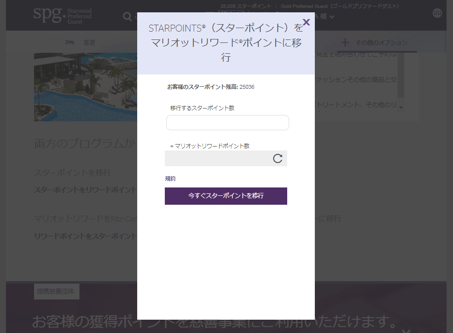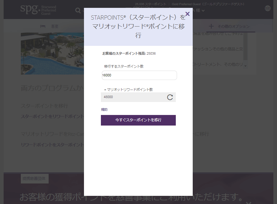 第一段階:スターポイントをマリオットリワードポイントに交換