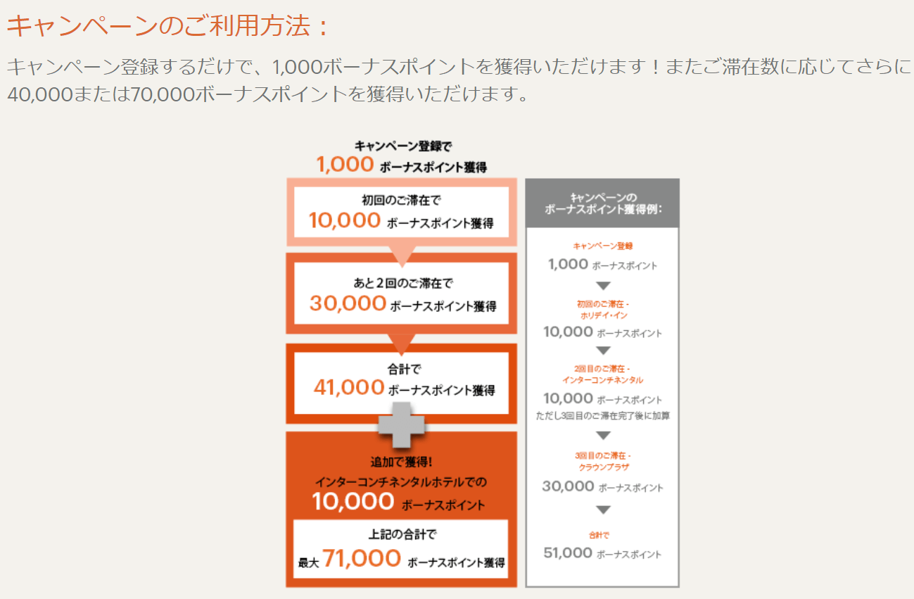 つまり3滞在全てインターコンチネンタルにすると合計71000ポイントもらえます