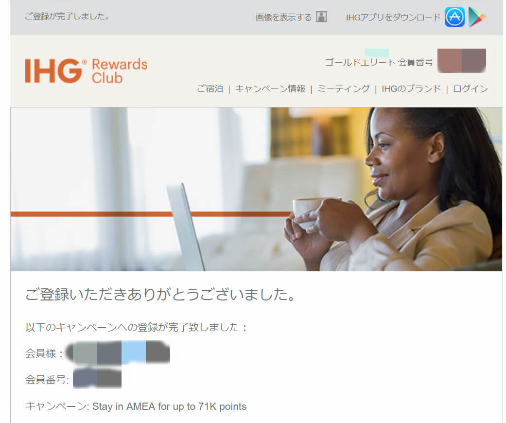「Stay in AMEA for up to 71K points」に実際に登録してみた