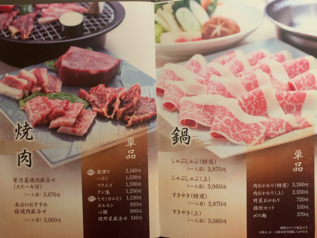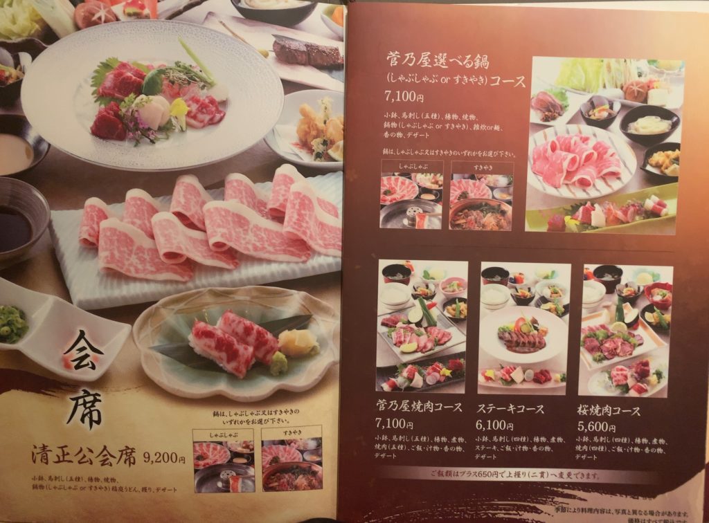 コースも豊富で、メインはしゃぶしゃぶ、すきやき、焼肉、ステーキといろいろなバリエーションがあっていいですね!