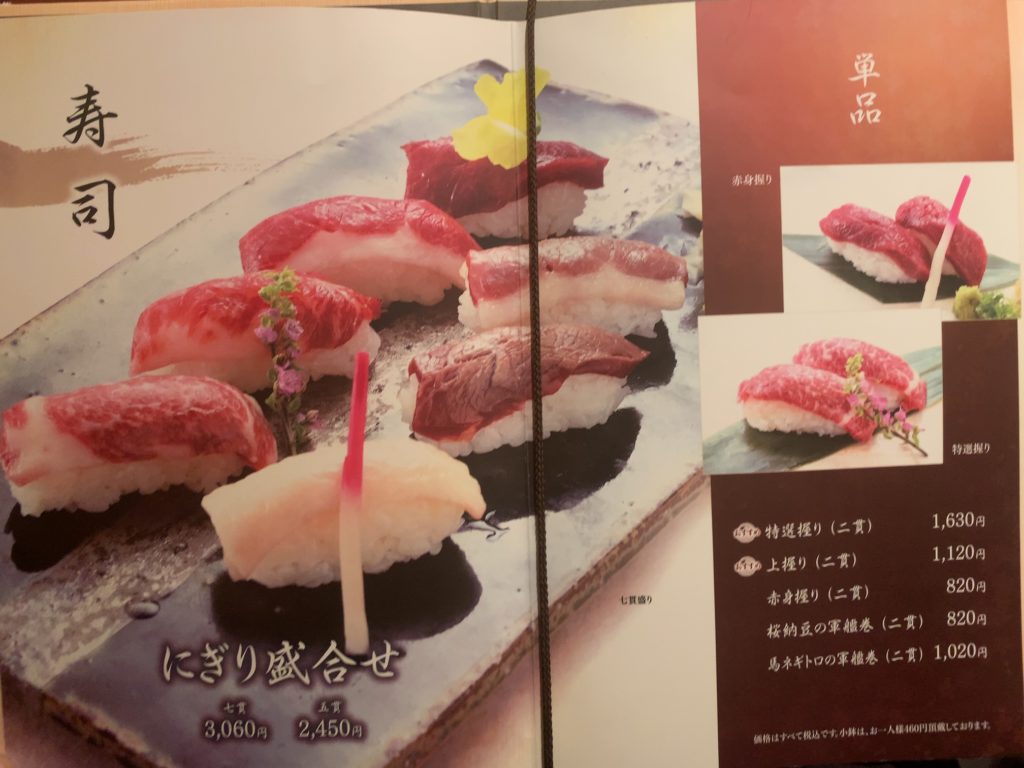 今回は子連れで熊本市内宿泊でしたので上通店、銀座通り店、熊本駅店を選択肢として考えました。禁煙の上通店と迷いましたが、子供は馬刺しや馬肉のお寿司というよりは馬焼肉や鍋があった方がいいかなぁと銀座通り店に行きました