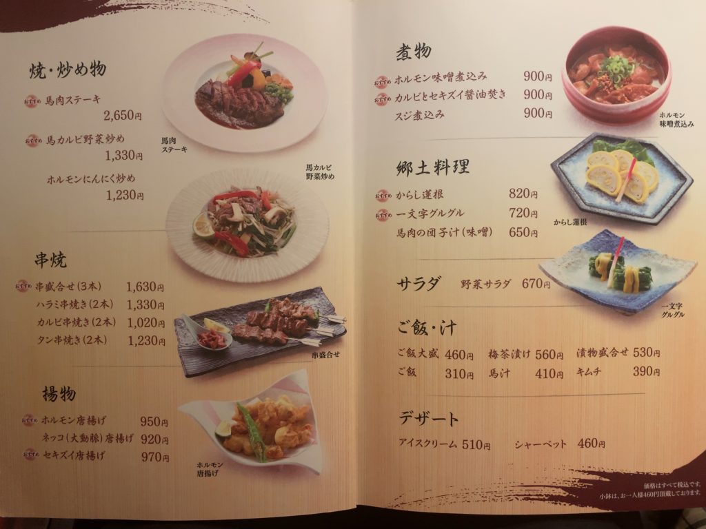 ・焼肉食べ放題(馬だけでなく和牛も)とハンバーグなど洋食が中心