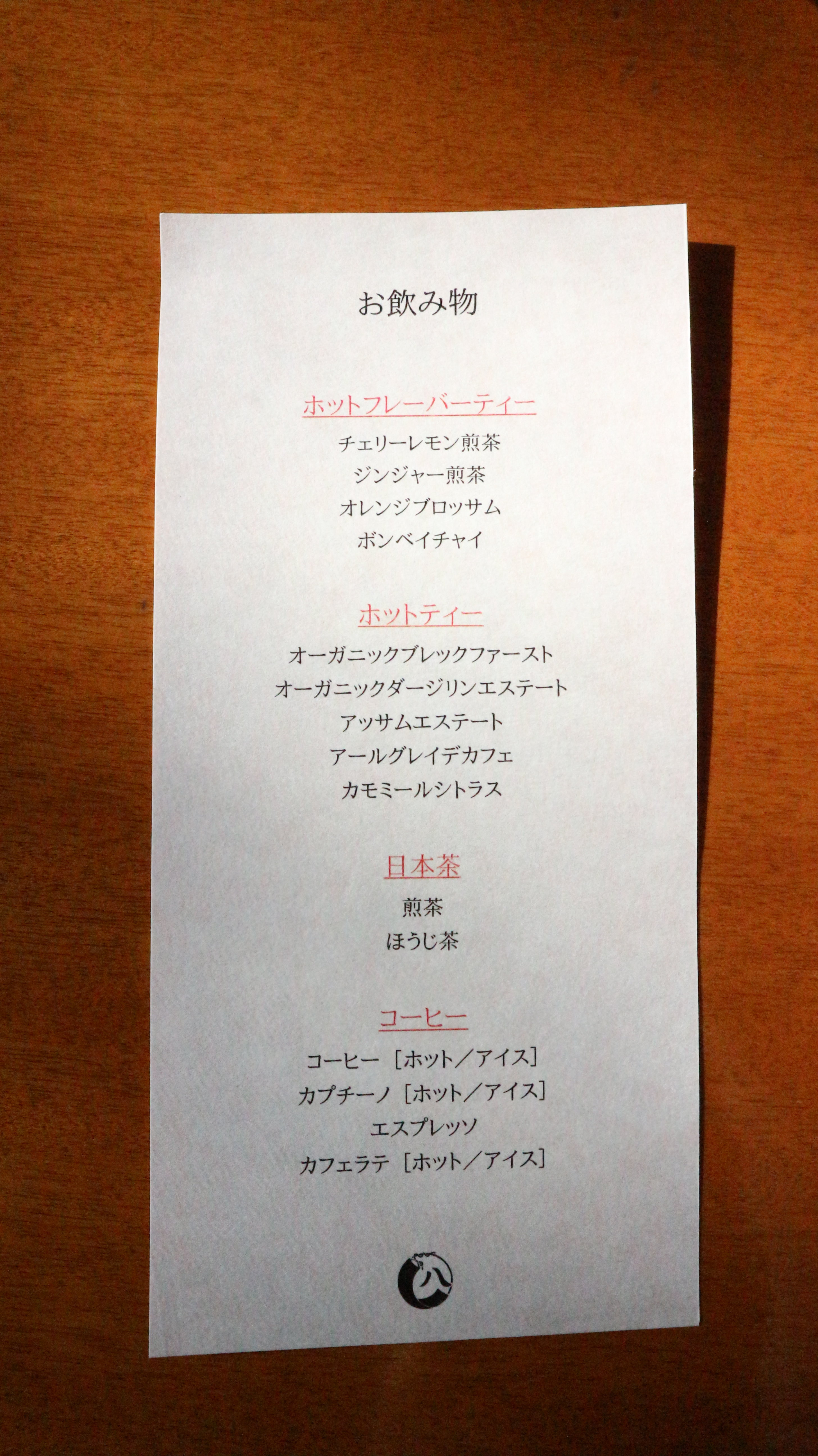 飲み物のメニュー