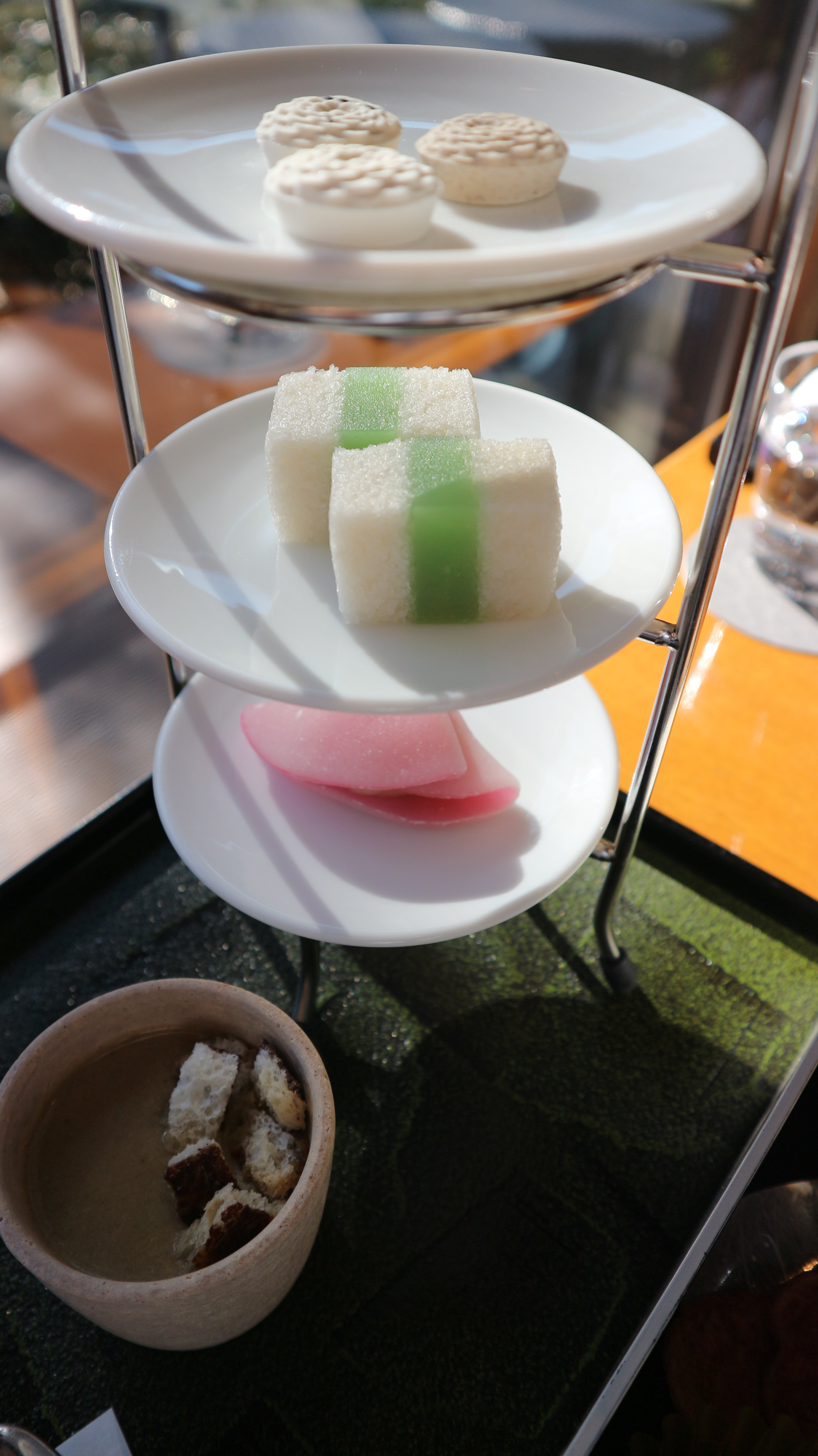 これらのお菓子は下の写真のように3段トレイに載せられて運ばれてきました!