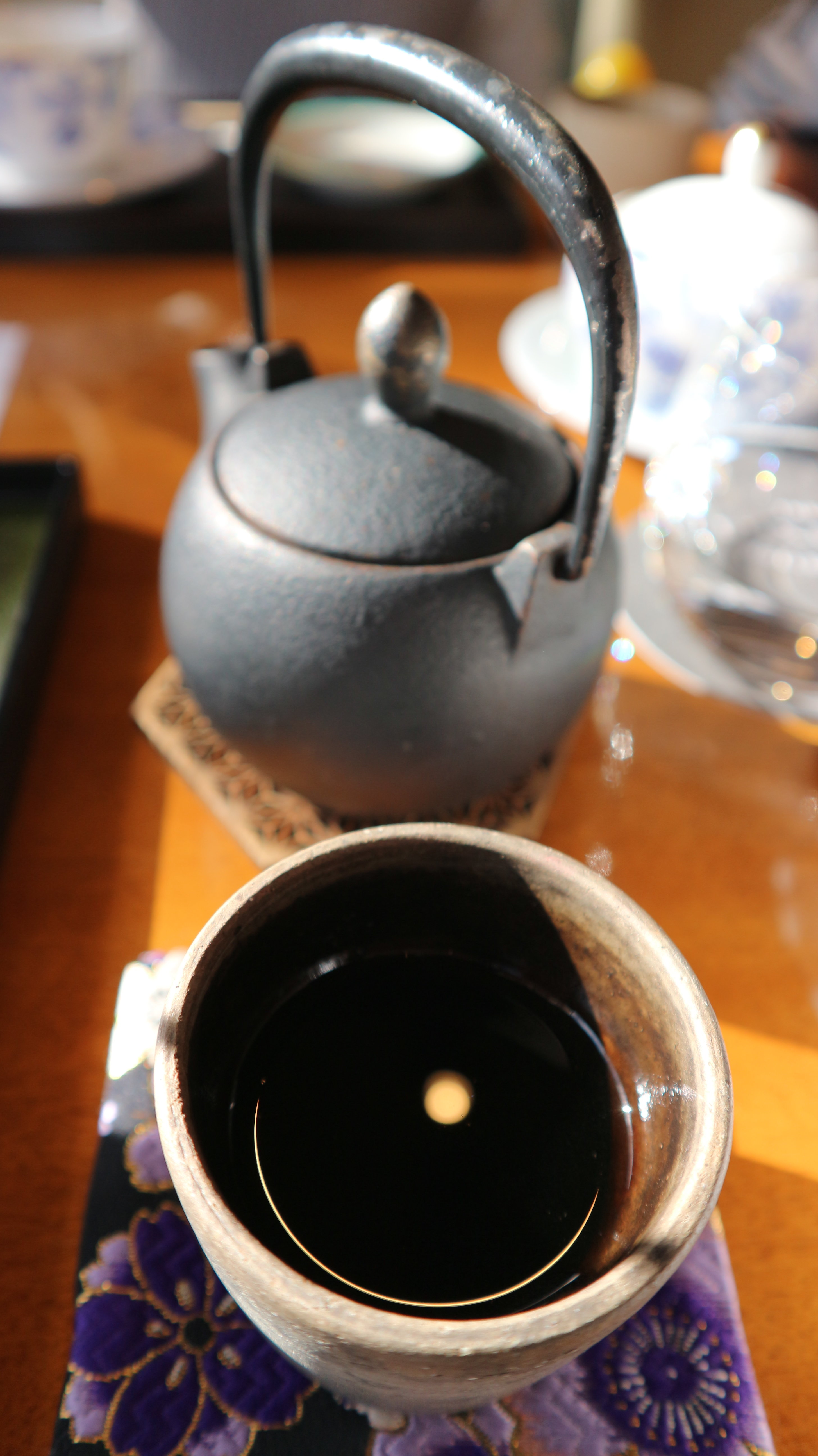 僕はジンジャー煎茶とほうじ茶を頂きました。下の画像はほうじ茶です。鉄器の急須やお茶碗も素敵です!