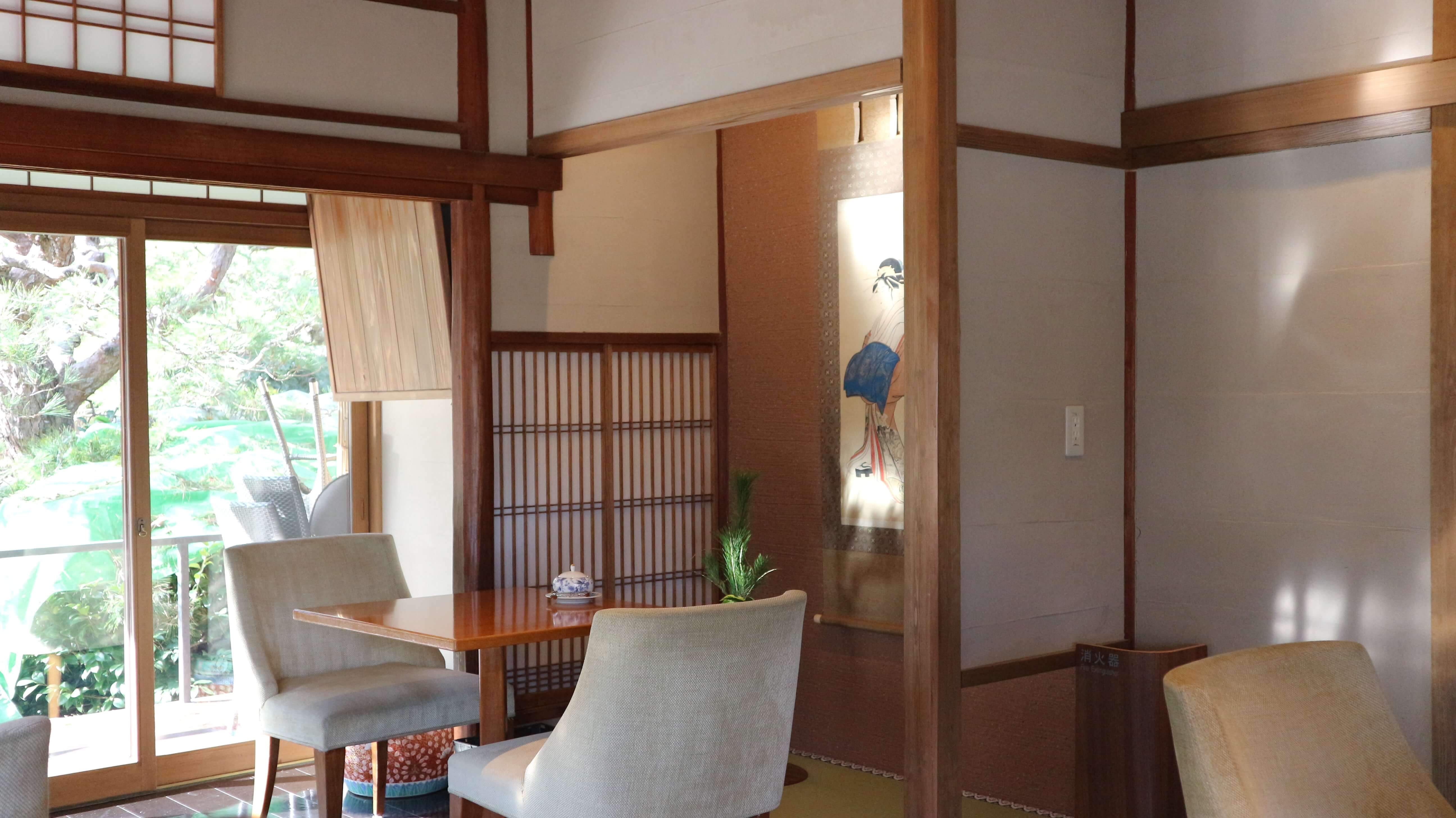 やはり築100年を超える歴史的建造物のようです。内部はもちろんリノベーションされており、床の間など和の雰囲気を残しながらソファーやテーブルが並べられており和モダンカフェ風になっています。